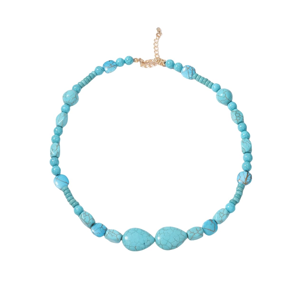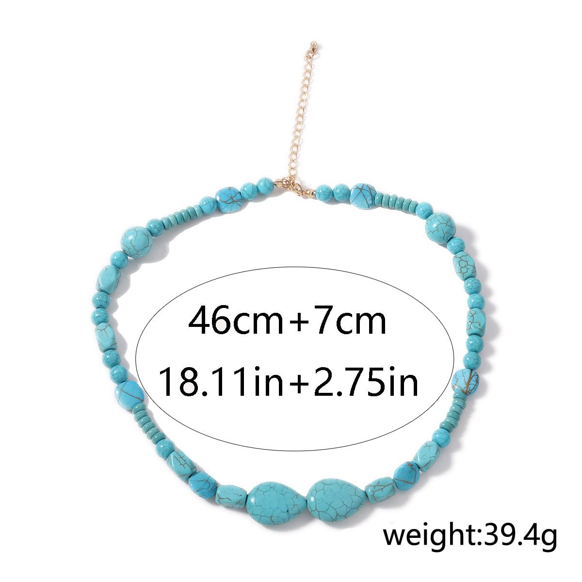 Rockyu ターコイズ天然石ネックレス レディース ビーズデザイン 調整可能 46cm+7cmBrawo-M000017K-songshi