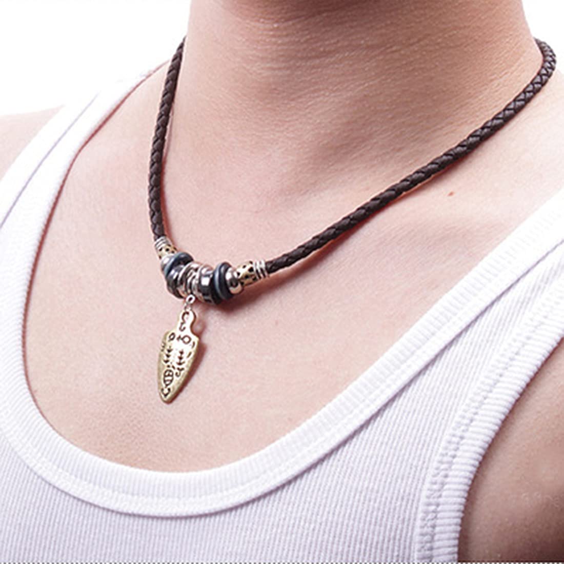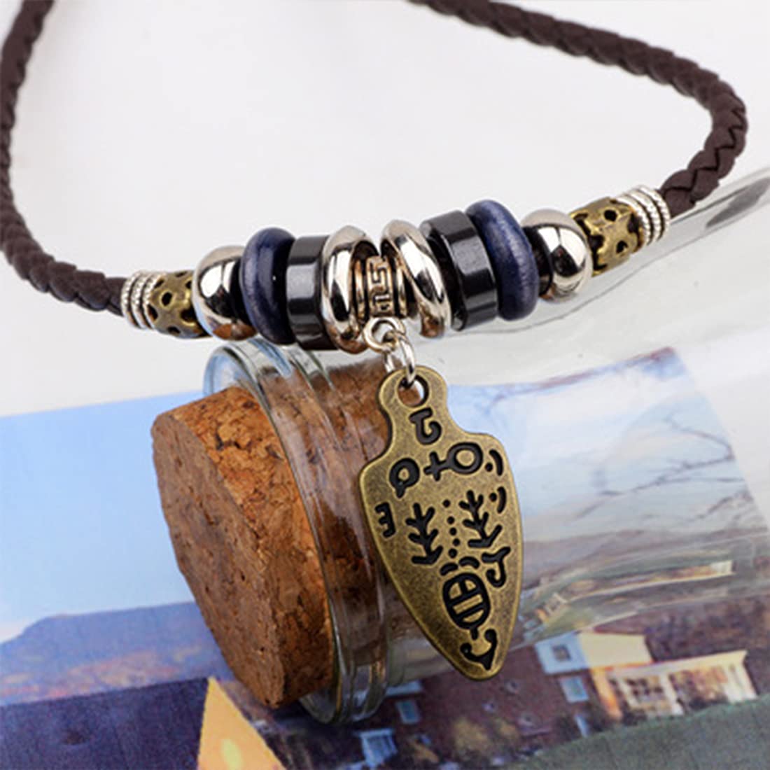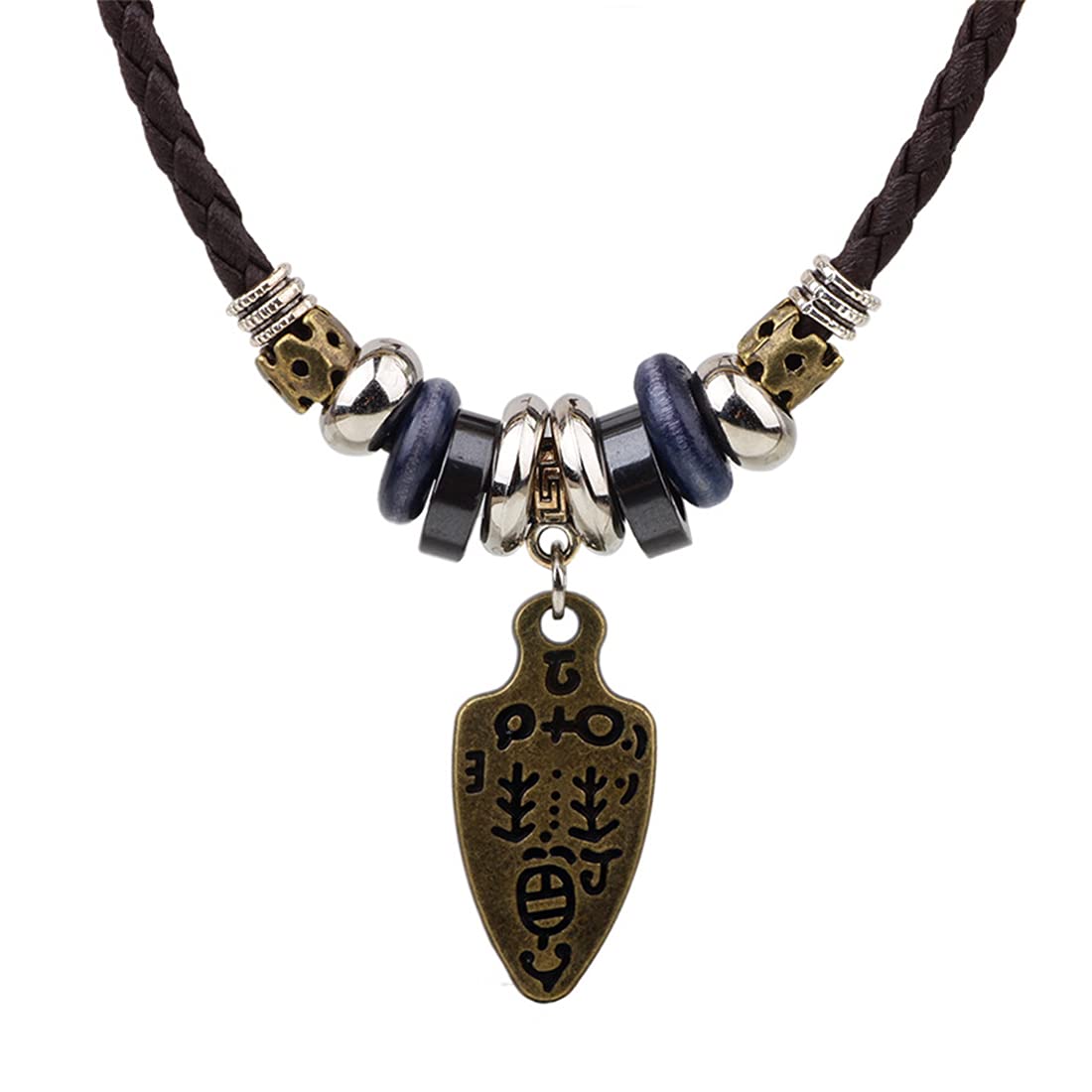 Rockyu ネックレス メンズ レザー 古剣チャーム 民族風 魔除け お守りアクセサリー