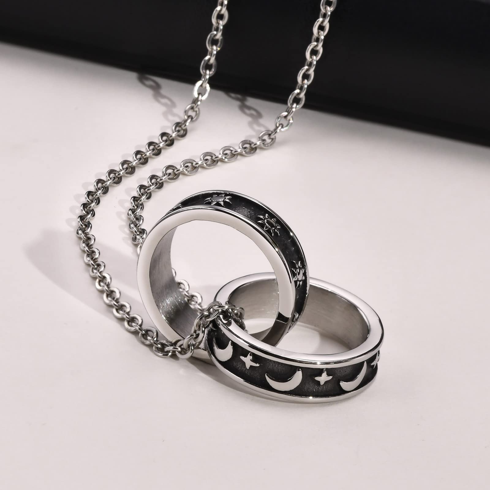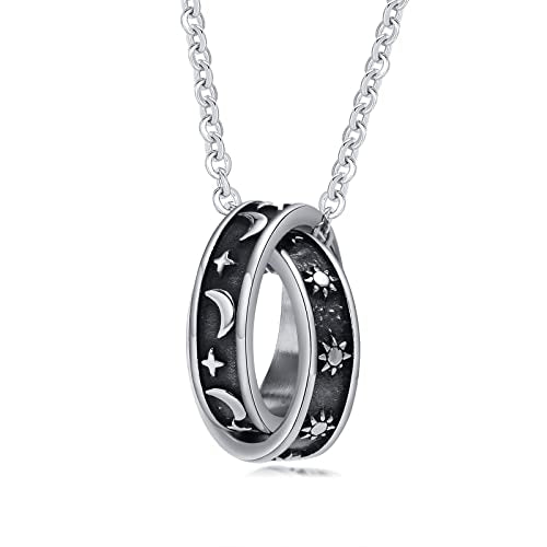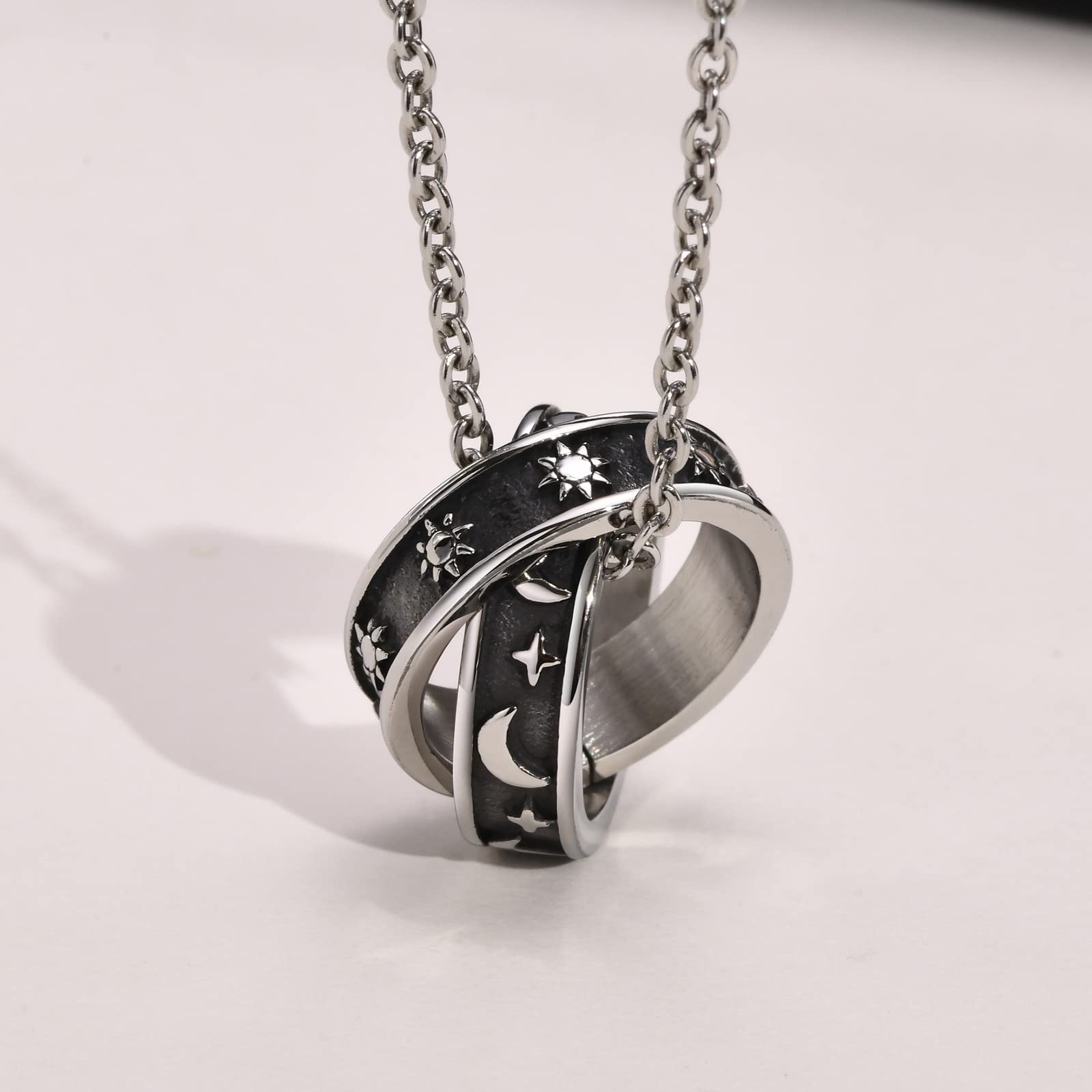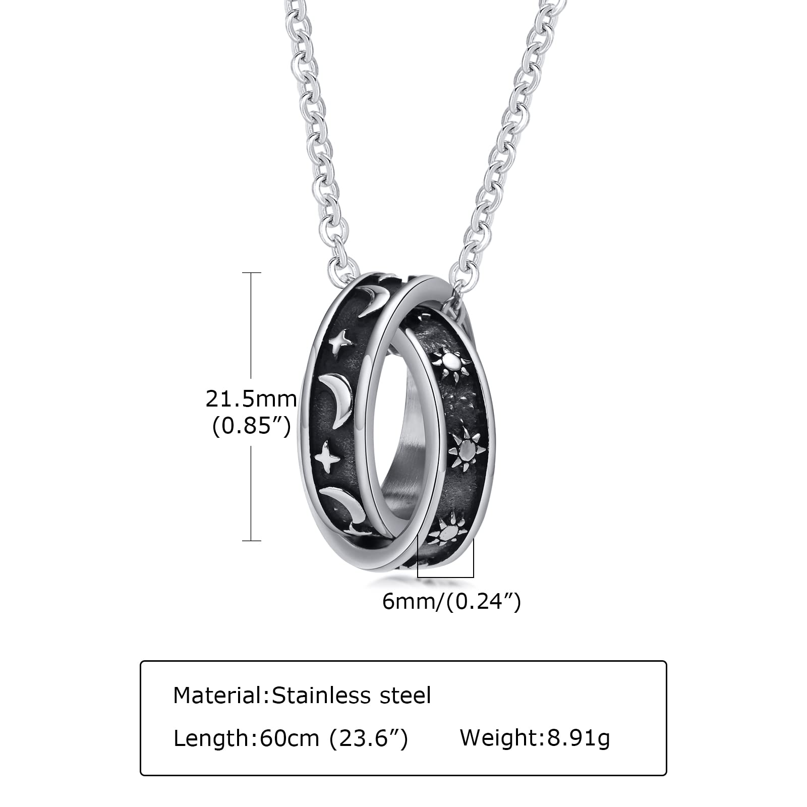 Rockyu ネックレス メンズ 月と太陽 ダブルリング ステンレス製 アレルギー対応 おしゃれペンダント