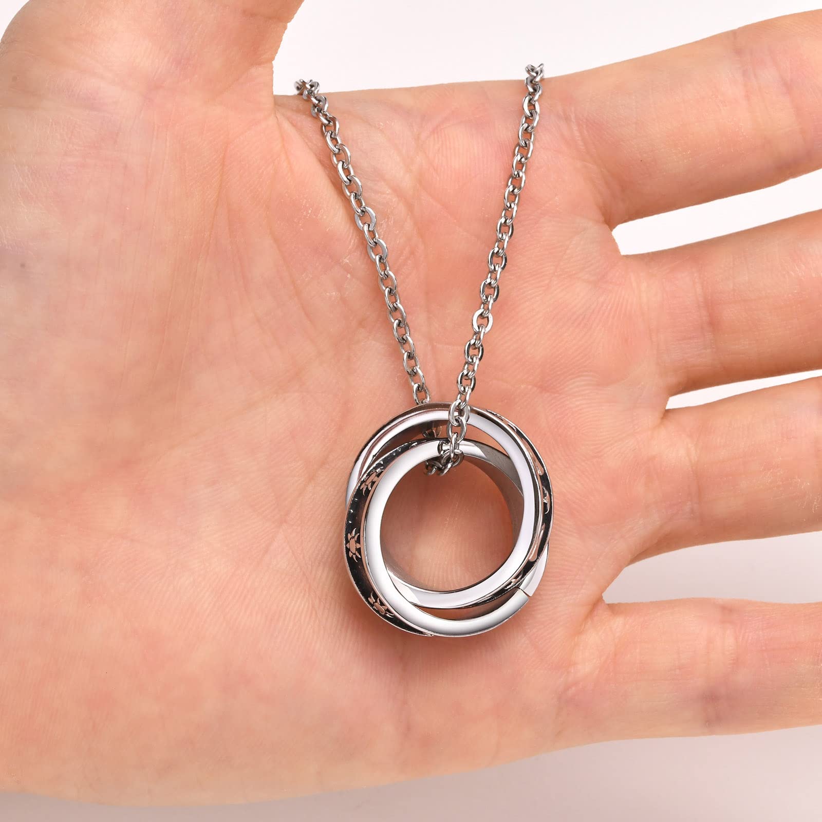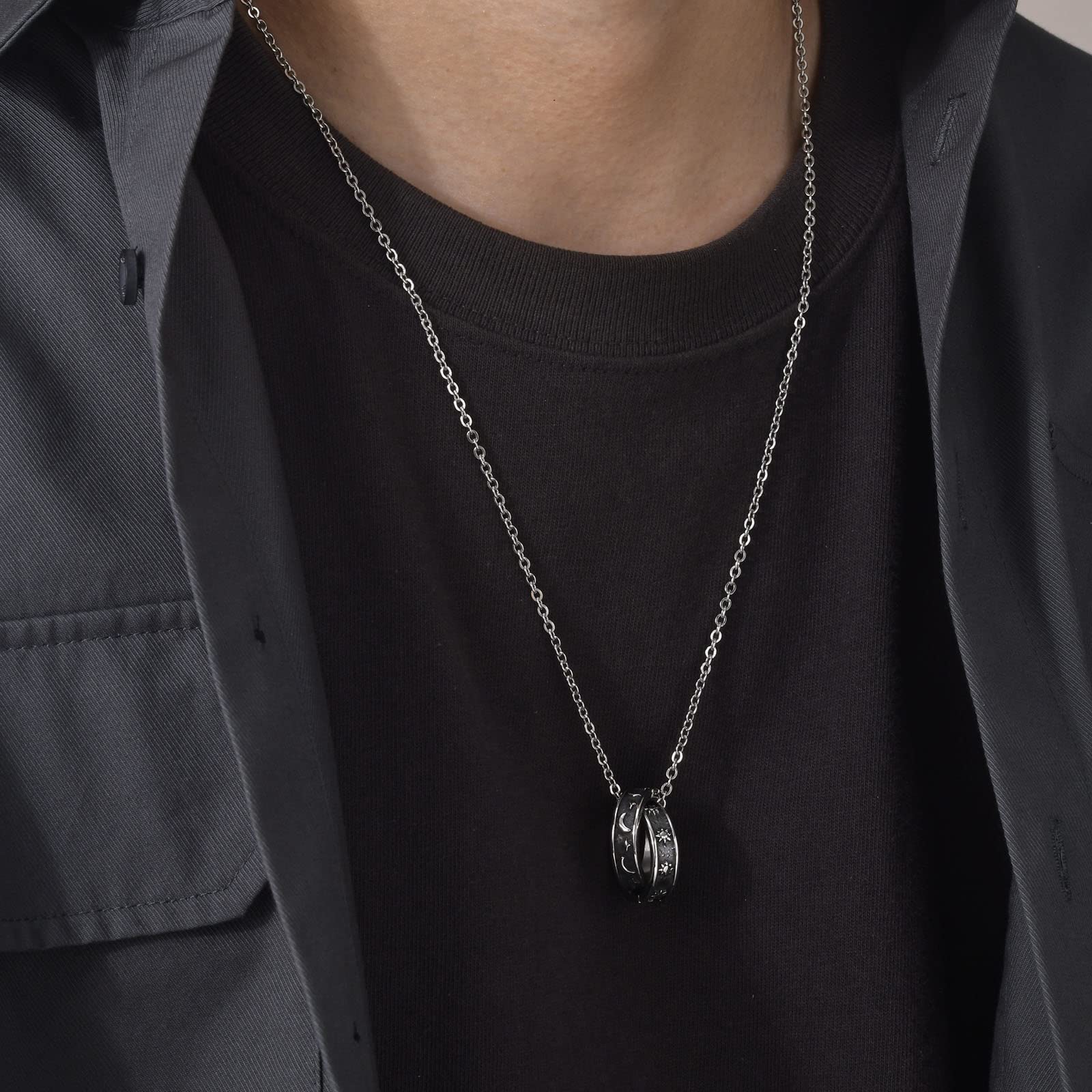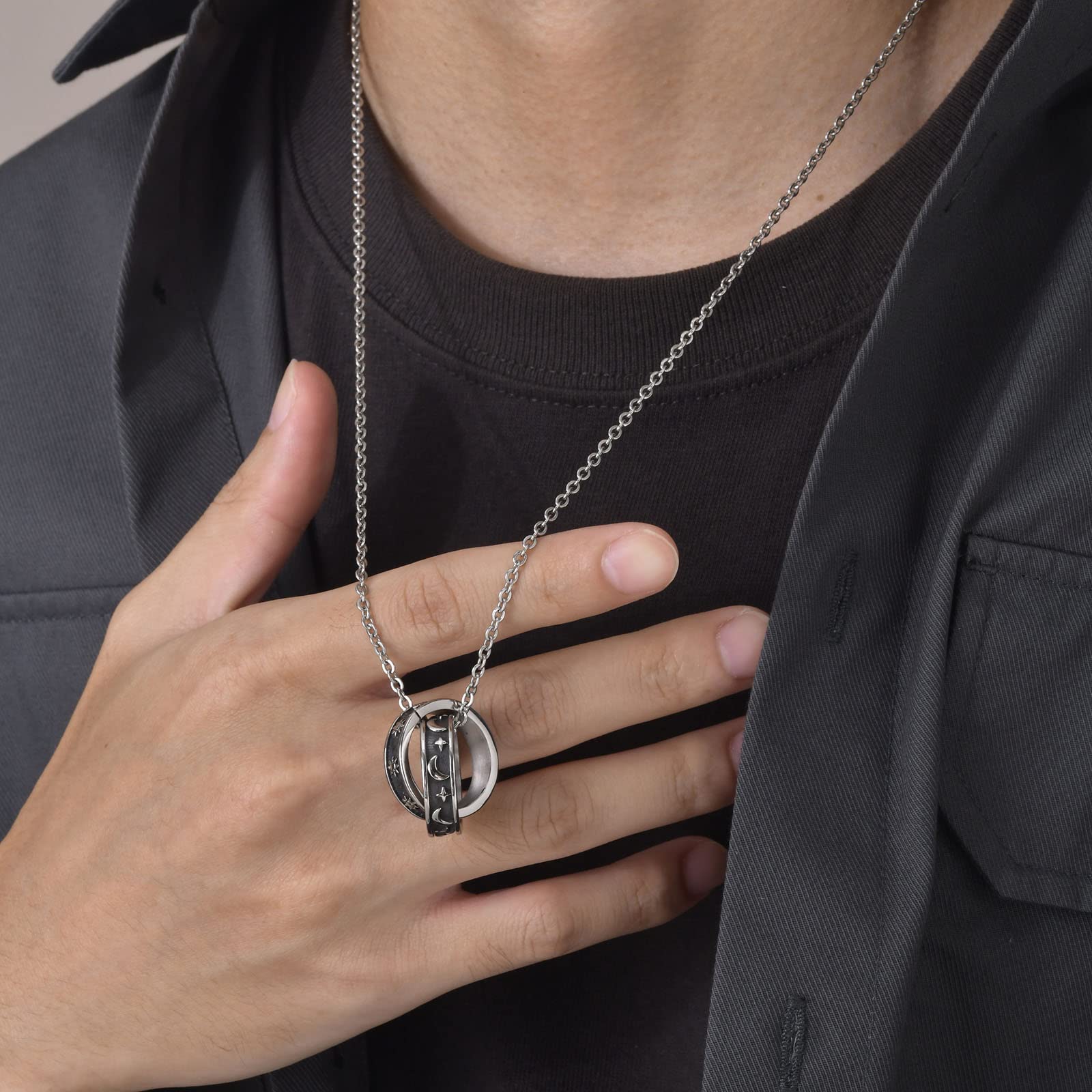 Rockyu ネックレス メンズ 月と太陽 ダブルリング ステンレス製 アレルギー対応 おしゃれペンダント