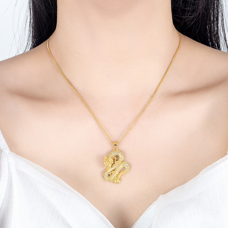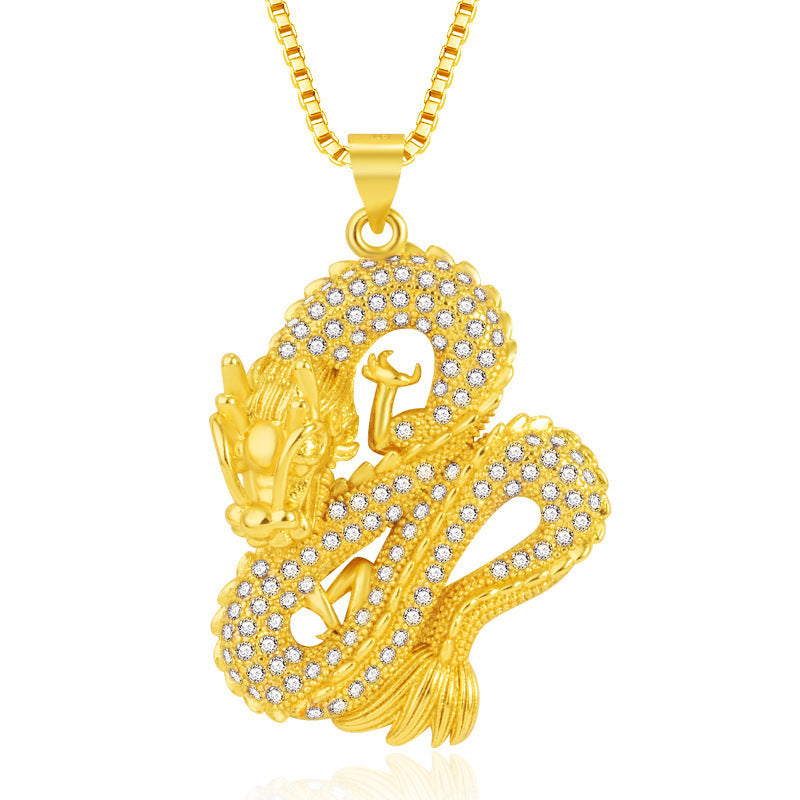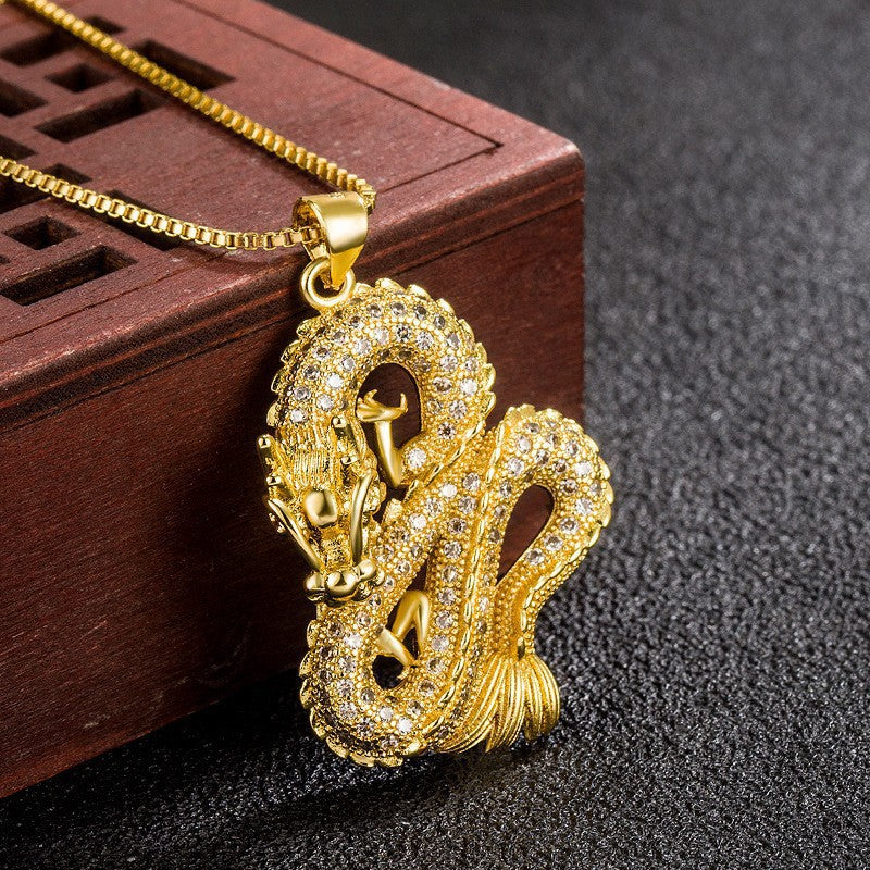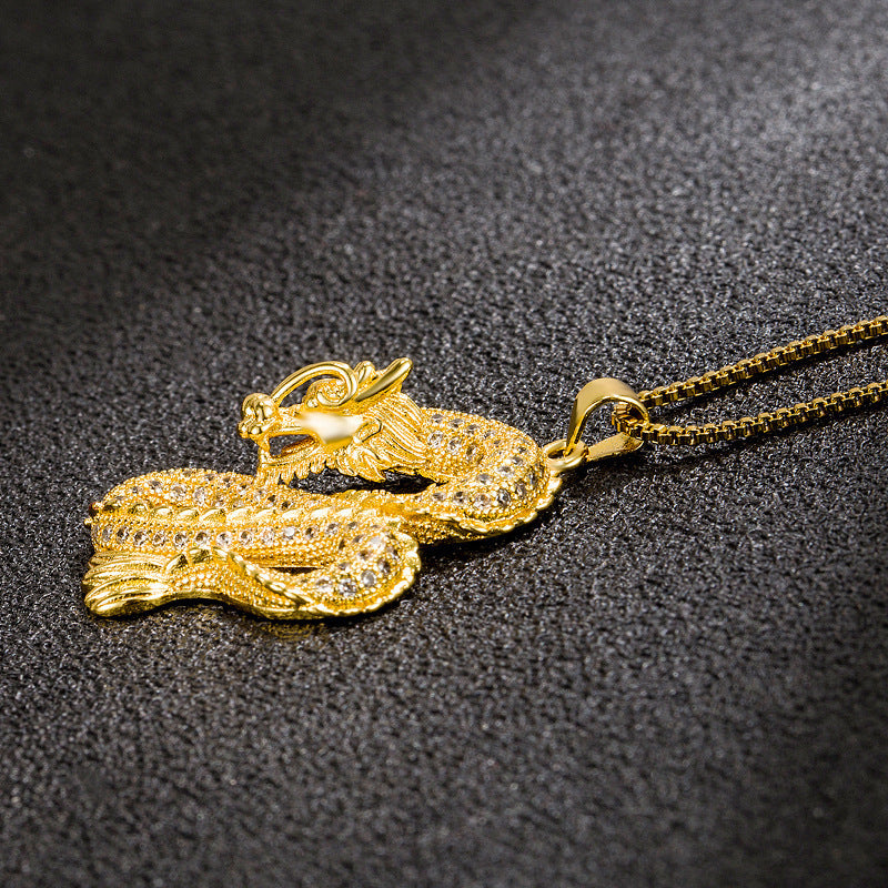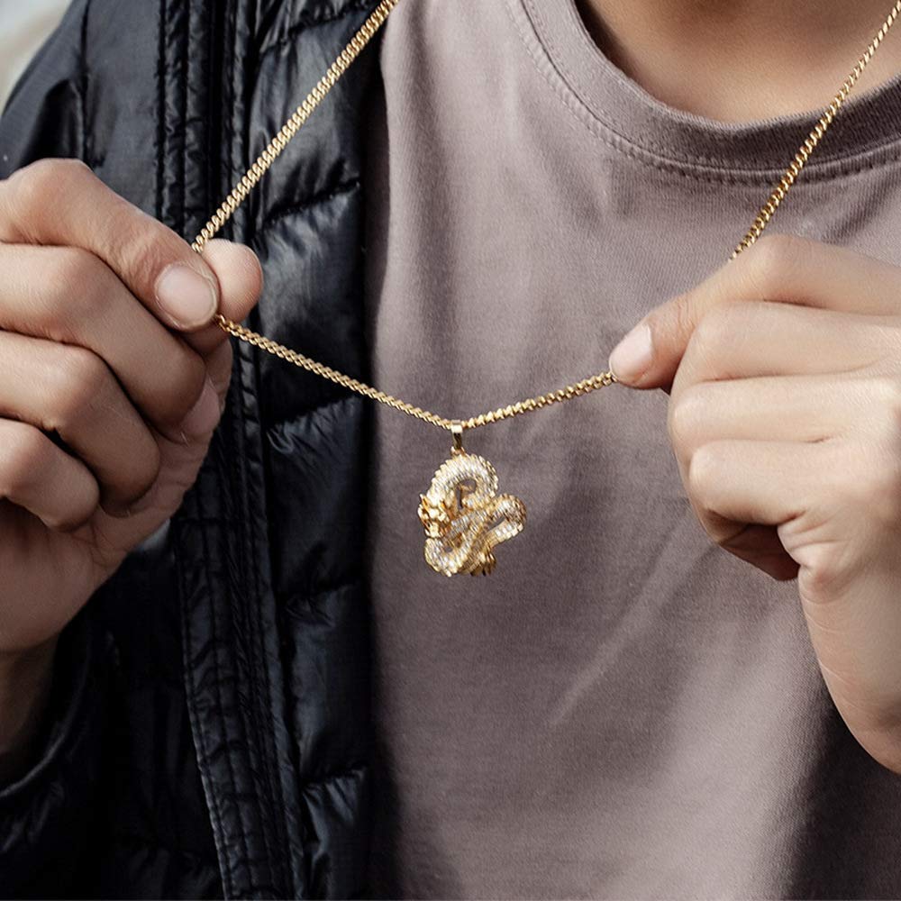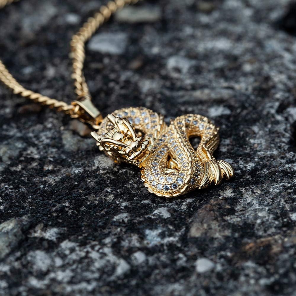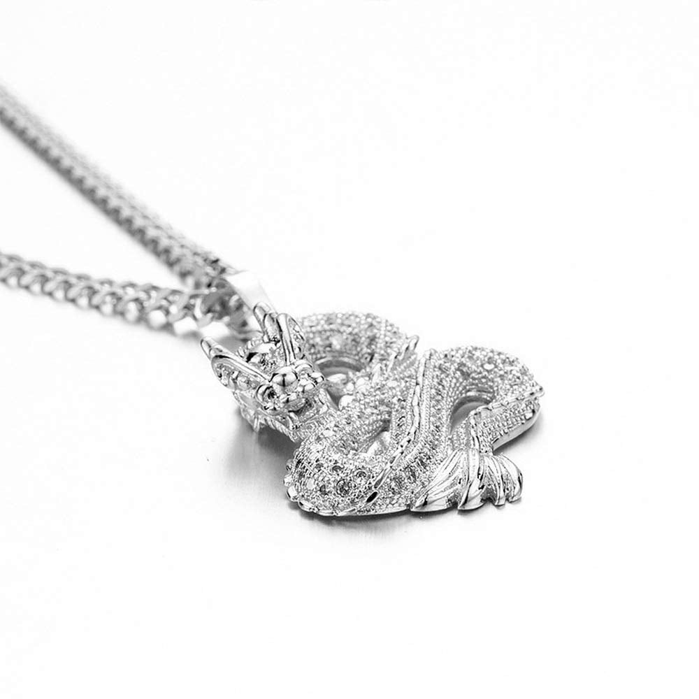 Rockyu ドラゴンネックレス メンズ|ジルコニア 龍モチーフ ペンダント ゴールド&シルバー 2色展開