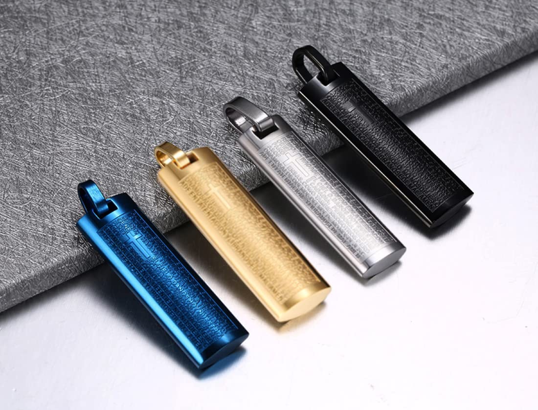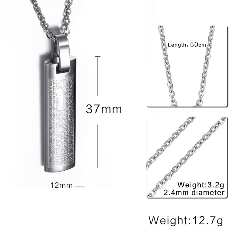 Rockyu ネックレス メンズ チタン製 十字架 プレートネックレス 経文 長方体ペンダント