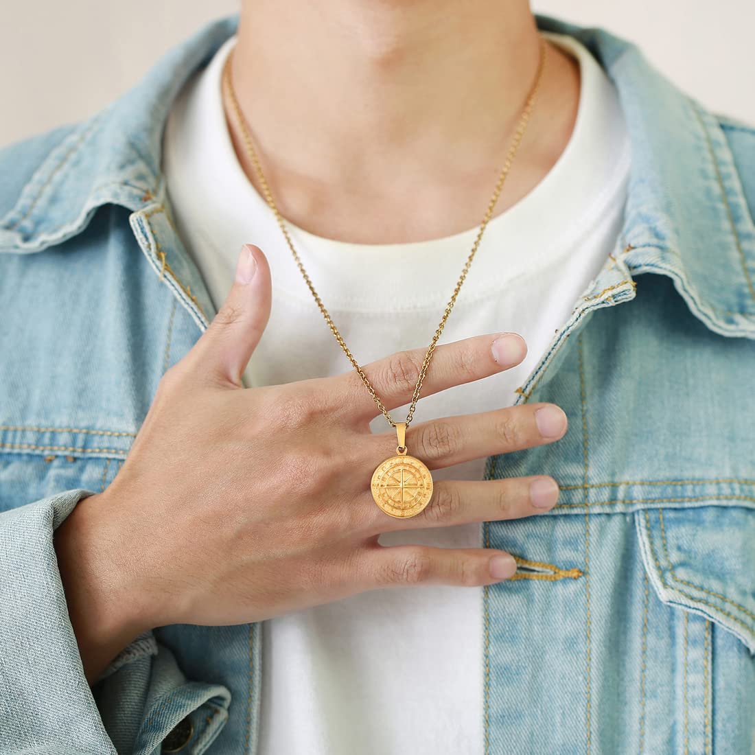 チタン製で金属アレルギーに配慮しており、安心して長時間着用可能。耐久性に優れ、色褪せにくい仕上がりが魅力です。コインモチーフに刻まれた星形デザインは、力強さと遊び心を同時に表現。シンプルなTシャツやシャツスタイルに合わせるだけで、印象的なアクセントとなります。