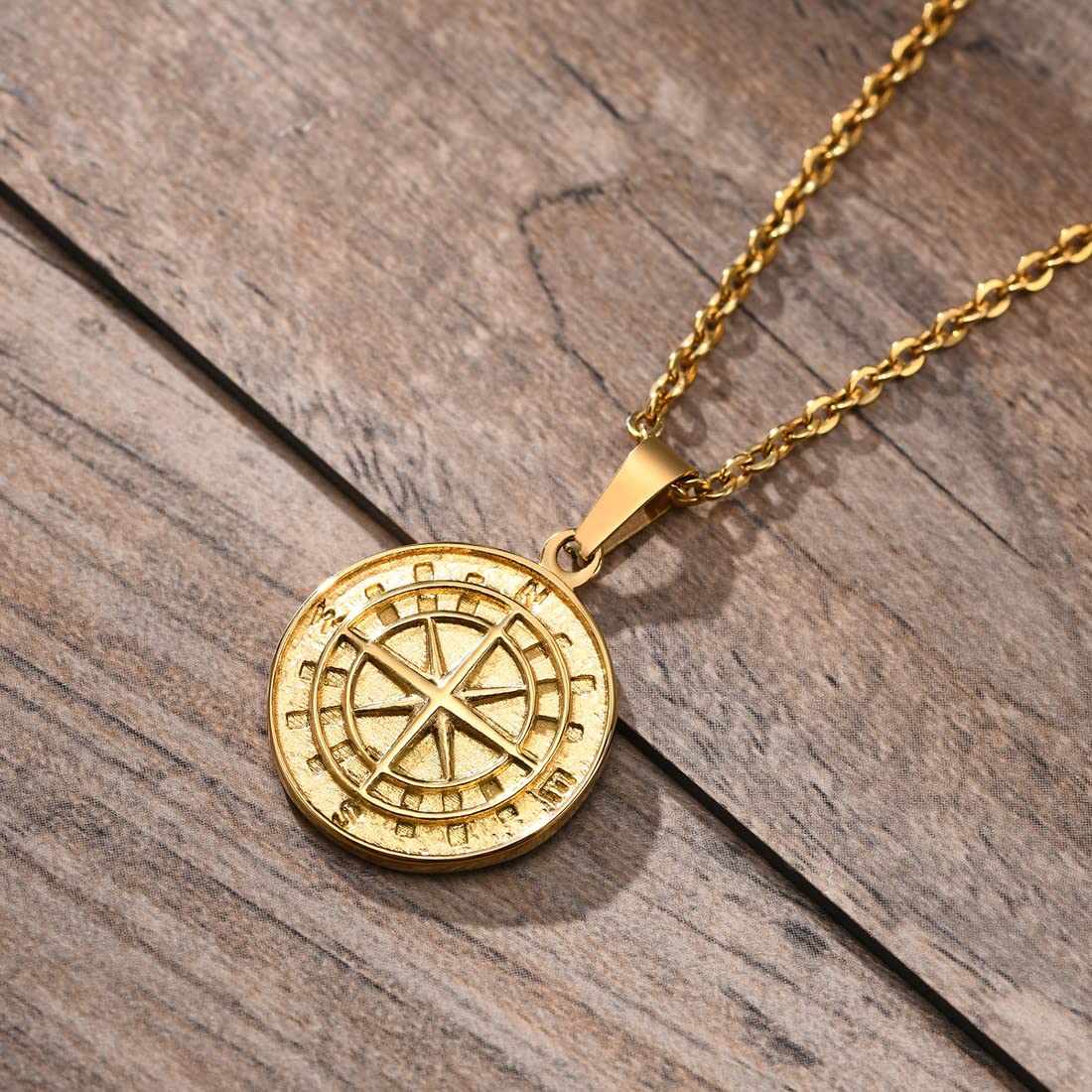 Rockyu ネックレス メンズ シルバー ゴールド ブラック コイン 星形ペンダント チタン製 アクセサリー