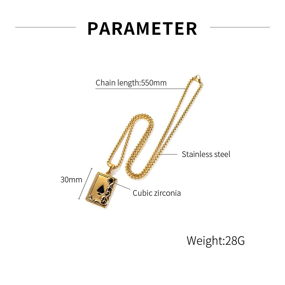 Rockyu ネックレス メンズ ペンダント スペードA 18金 ステンレス 個性的 シルバー ゴールド