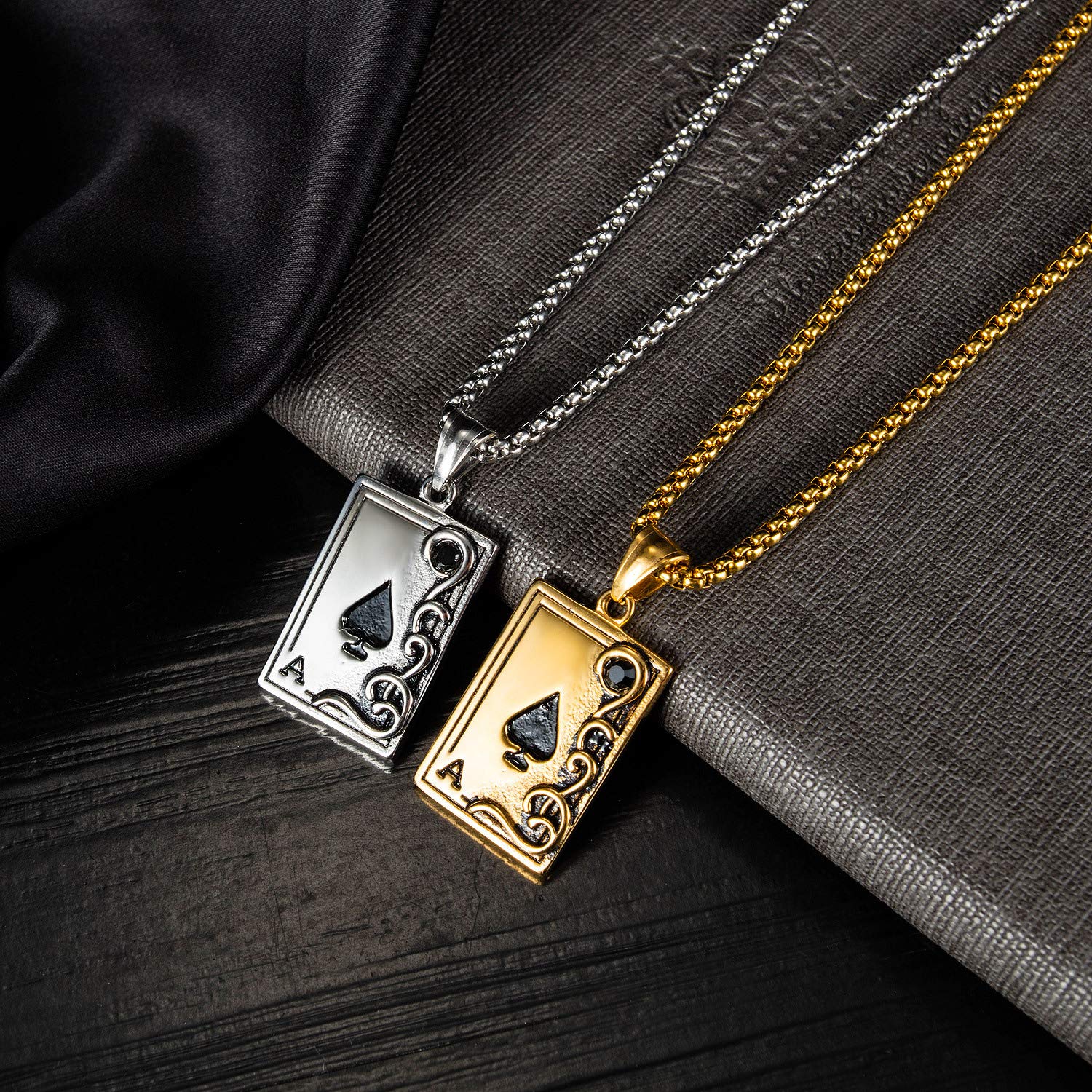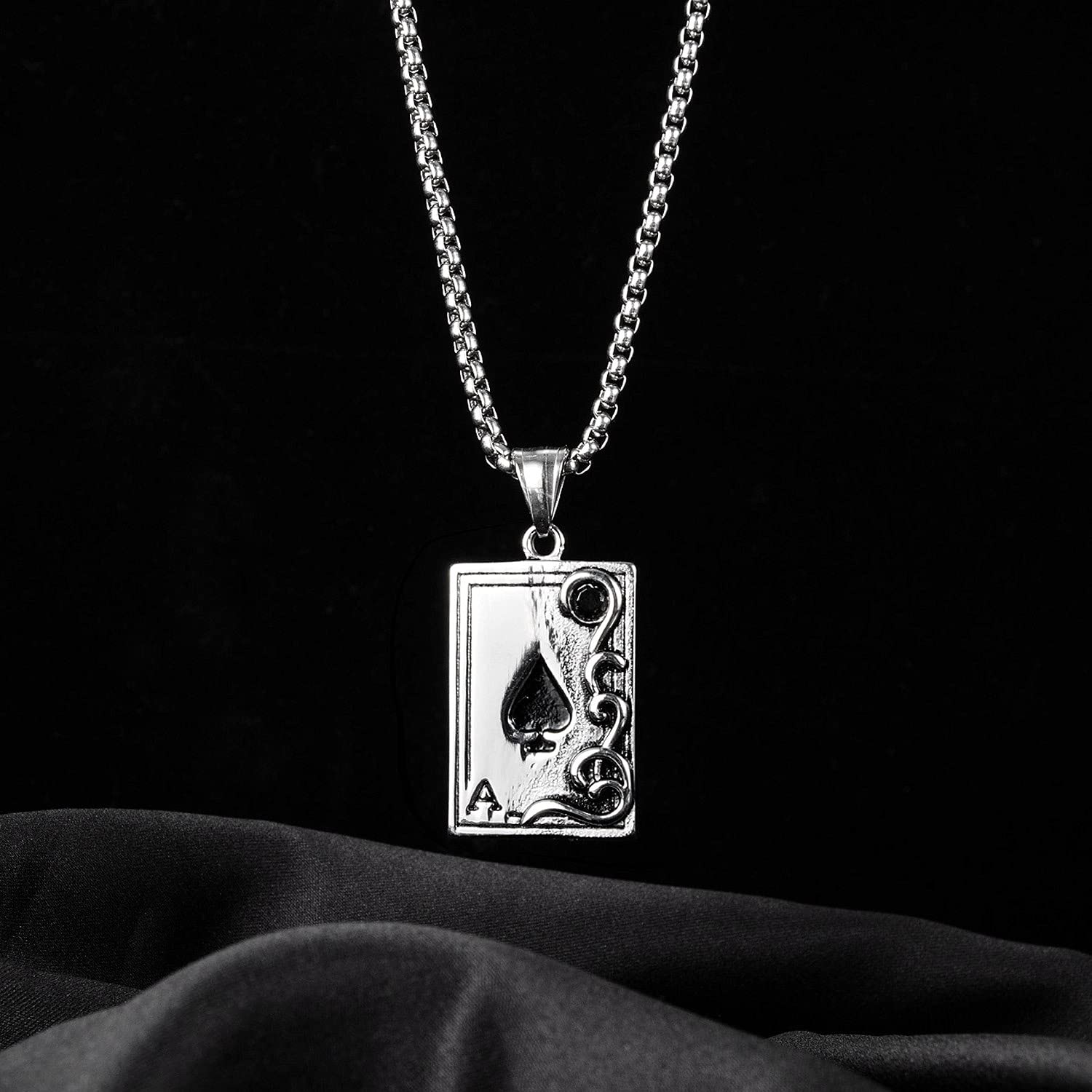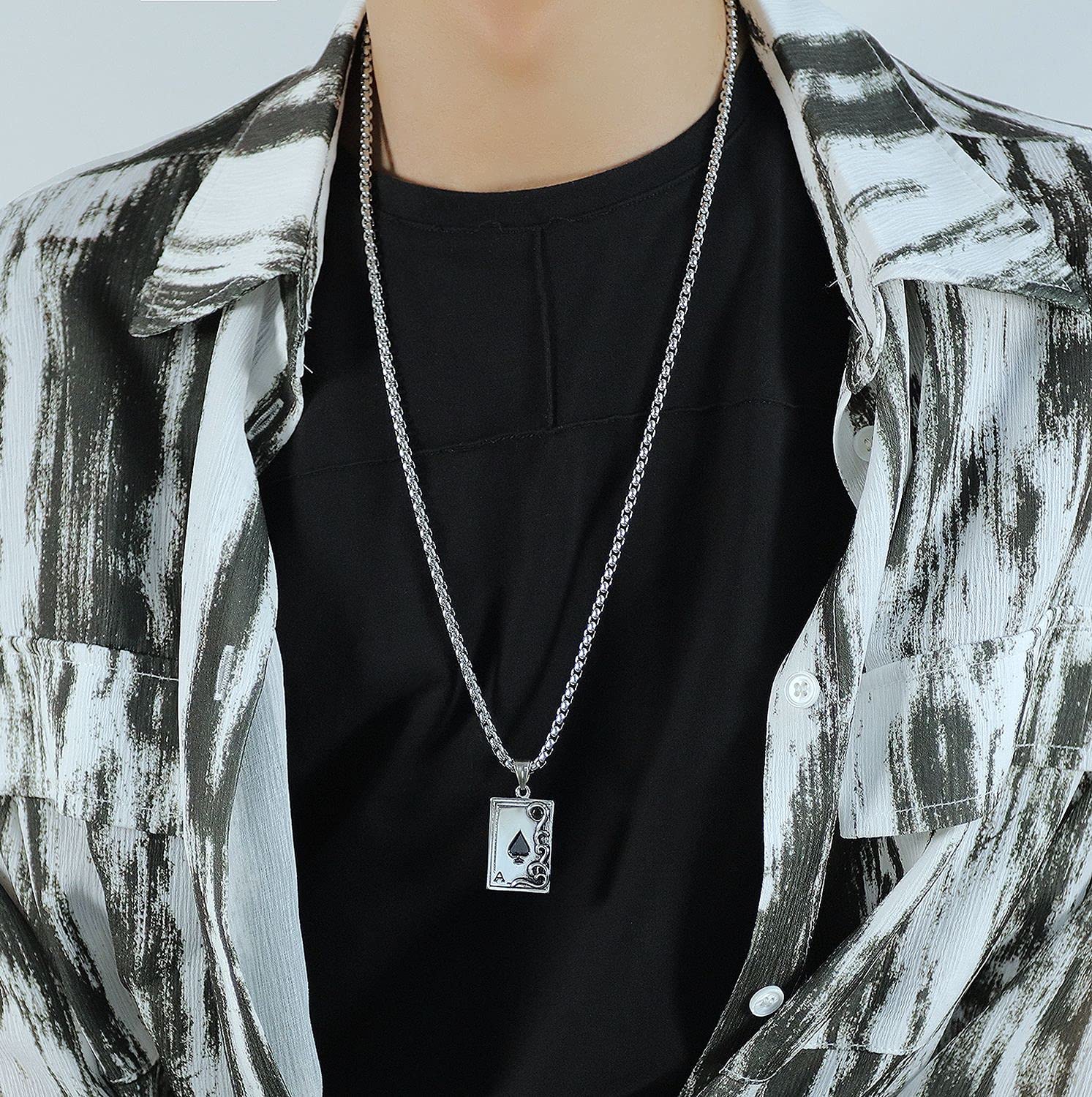 チェーンの長さは約55cm、程よい重量感(28g)があり、Tシャツやシャツの上に重ねてつけるだけで一気にストリート感が高まるアイテム。スペードAは「切り札」や「勝利」を象徴するモチーフでもあり、自信と個性をアピールしたい方にぴったり。友人へのプレゼントやペアアイテムとしても人気のデザインです。
