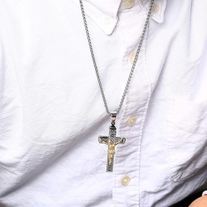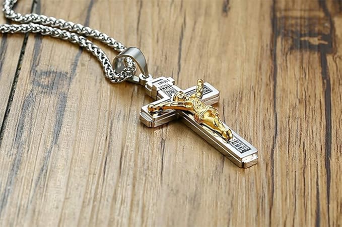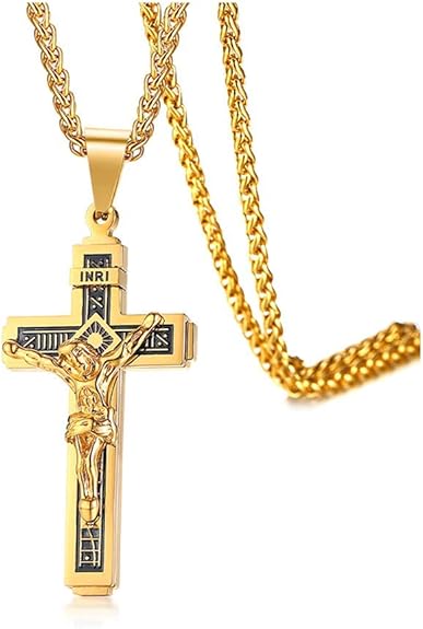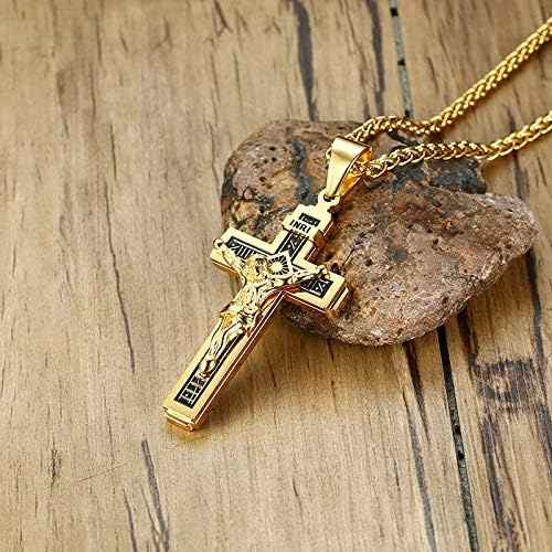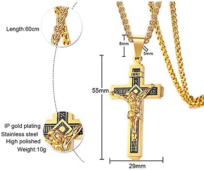 Rockyu ネックレス メンズ 十字架 ゴールド イエス クロスペンダント ステンレス製 宗教モチーフ