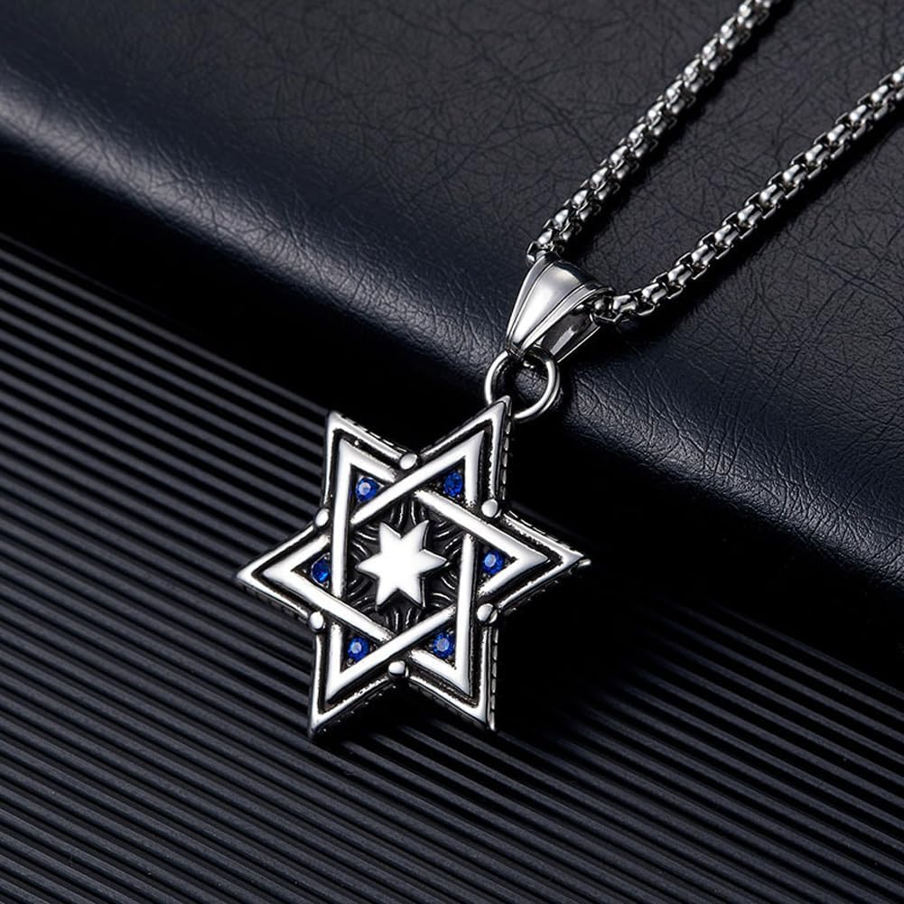Rockyu スターオブデイビッド ペンダントネックレス メンズ レディース ステンレス製