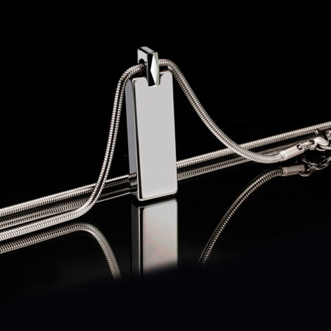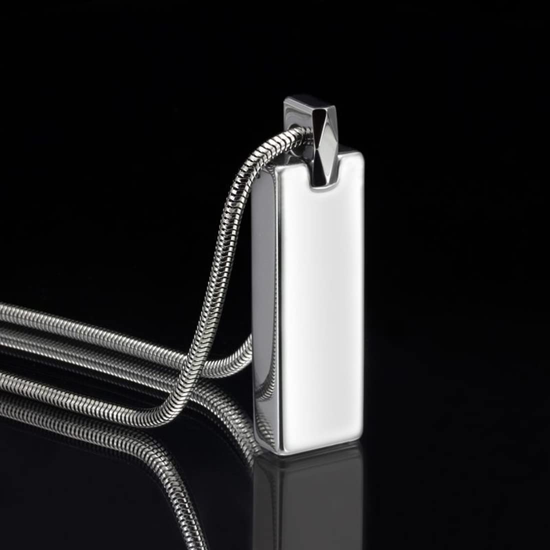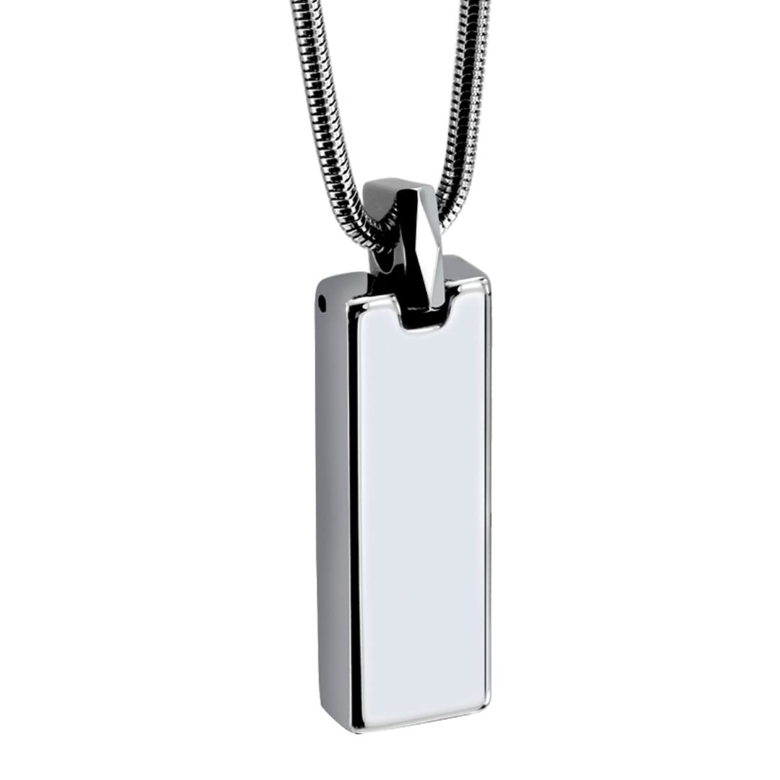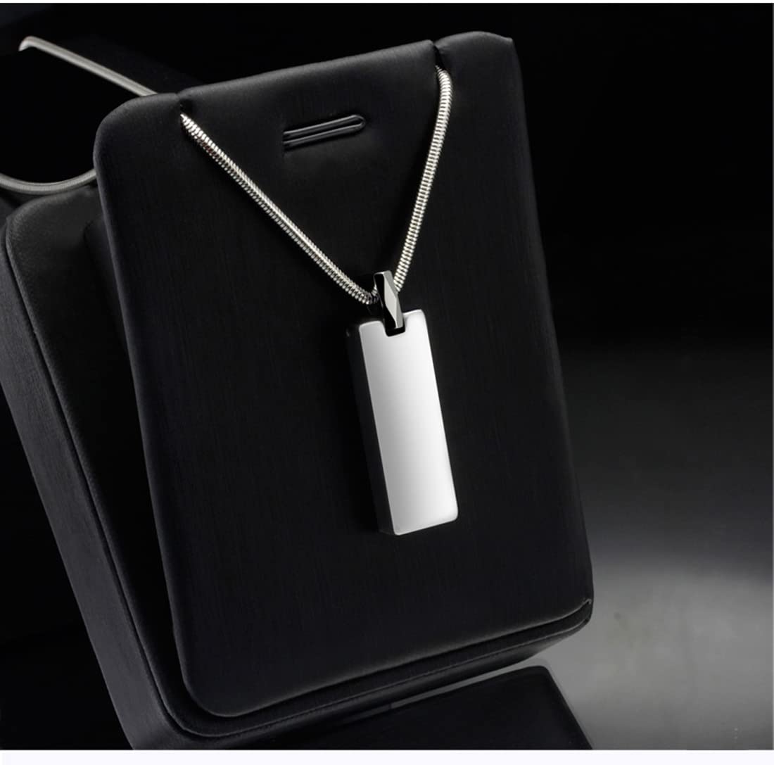 Rockyu ネックレス メンズ シルバー タングステン 長方形 スティックペンダント 鏡面加工 チェーン付き