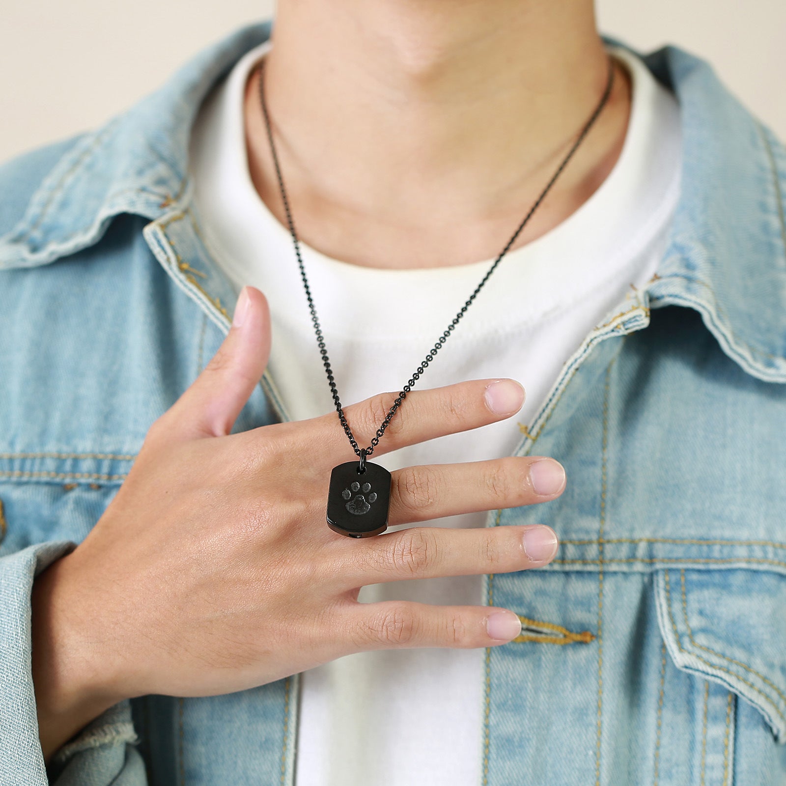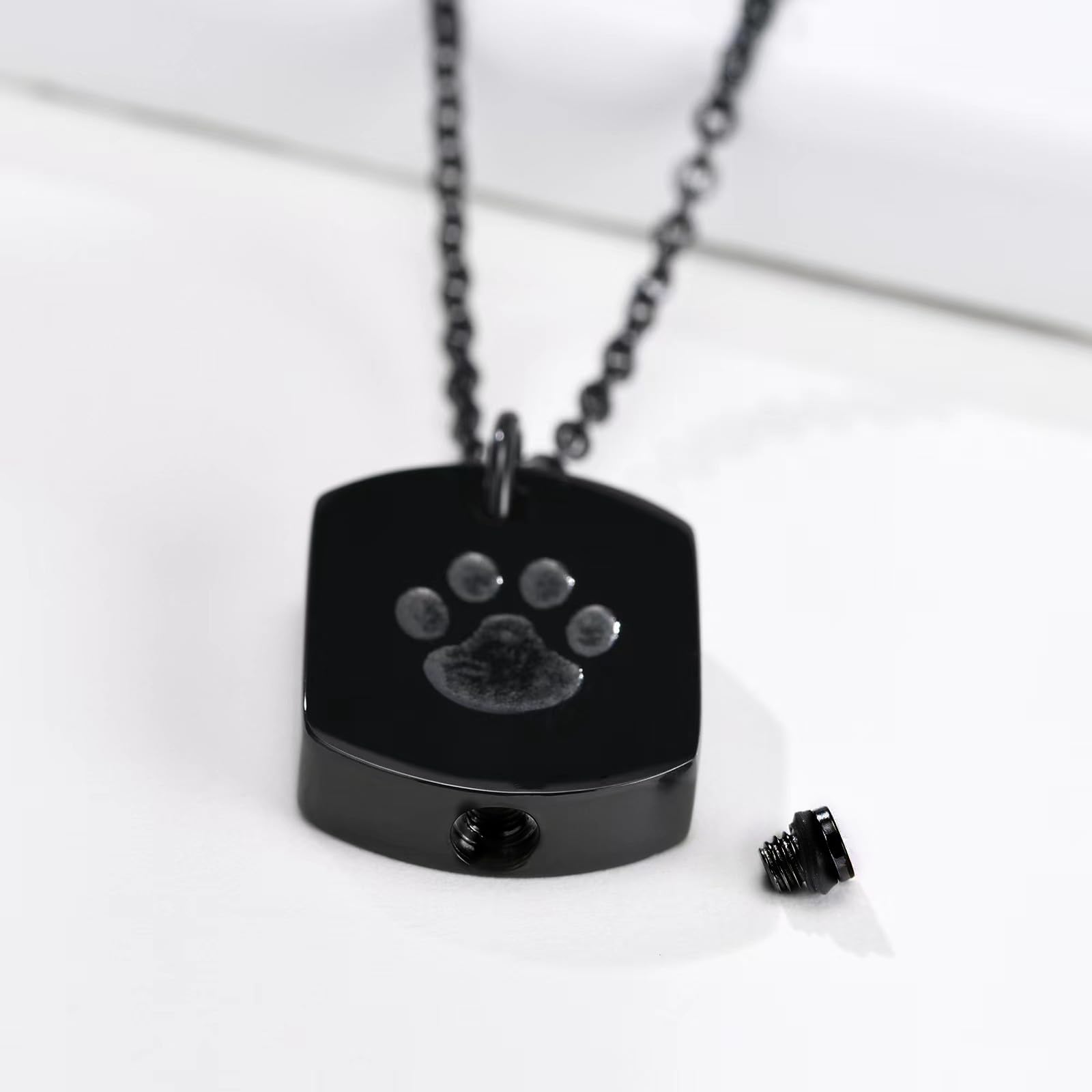 Rockyuのメンズネックレスは、肉球モチーフが刻まれたシンプルかつ印象的なデザイン。幅約20mm×高さ約24.5mmのトップは、ステンレススチール素材で仕上げられ、耐久性と美しい光沢を両立しています。チェーン長さは約60cmで、ゆったりとした着け心地。内部は開閉できる構造で、大切な想いをそっと身に着けることができます。ブラックとシルバーの2色展開で、カジュアルにもフォーマルにも合わせやすく、日常使いから特別なシーンまで幅広く活躍。大切なペットとの思い出を身近に感じたい方や、ユニークなアクセサリーを探している方におすすめです。記念日や誕生日のギフトにもぴったりな一品です。