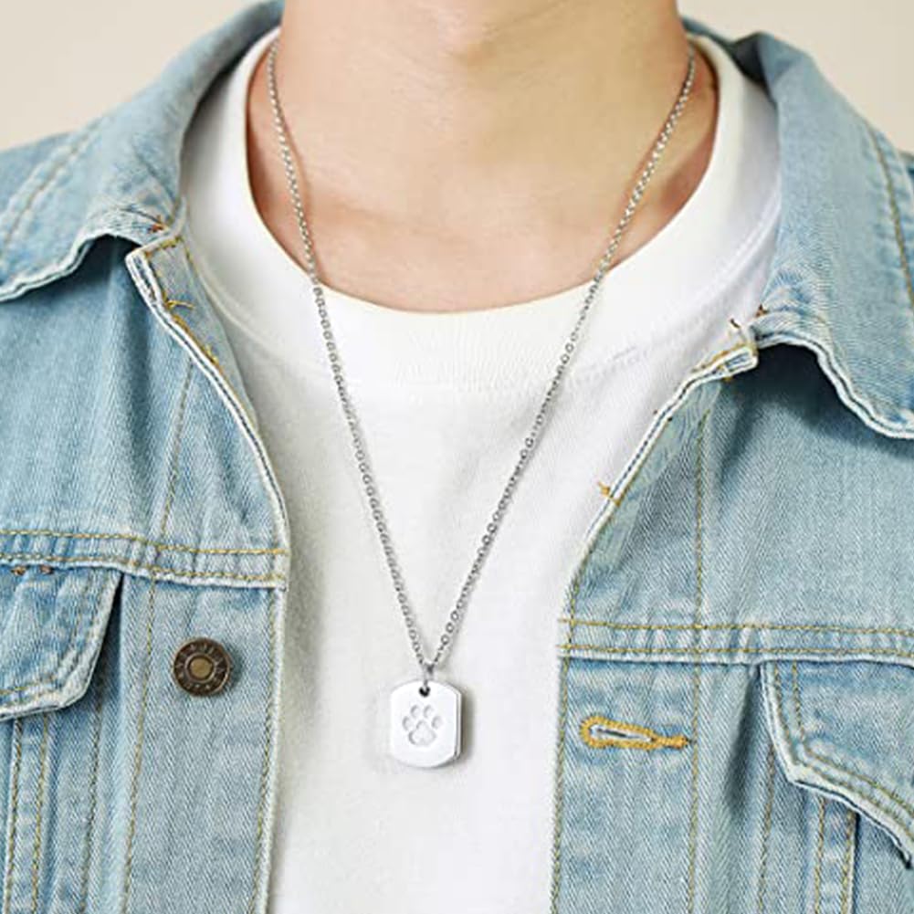 Rockyu ネックレス メンズ シルバー チェーン 手元供養 肉球ペンダント チタン素材 誕生日やパーティー ギフトにも