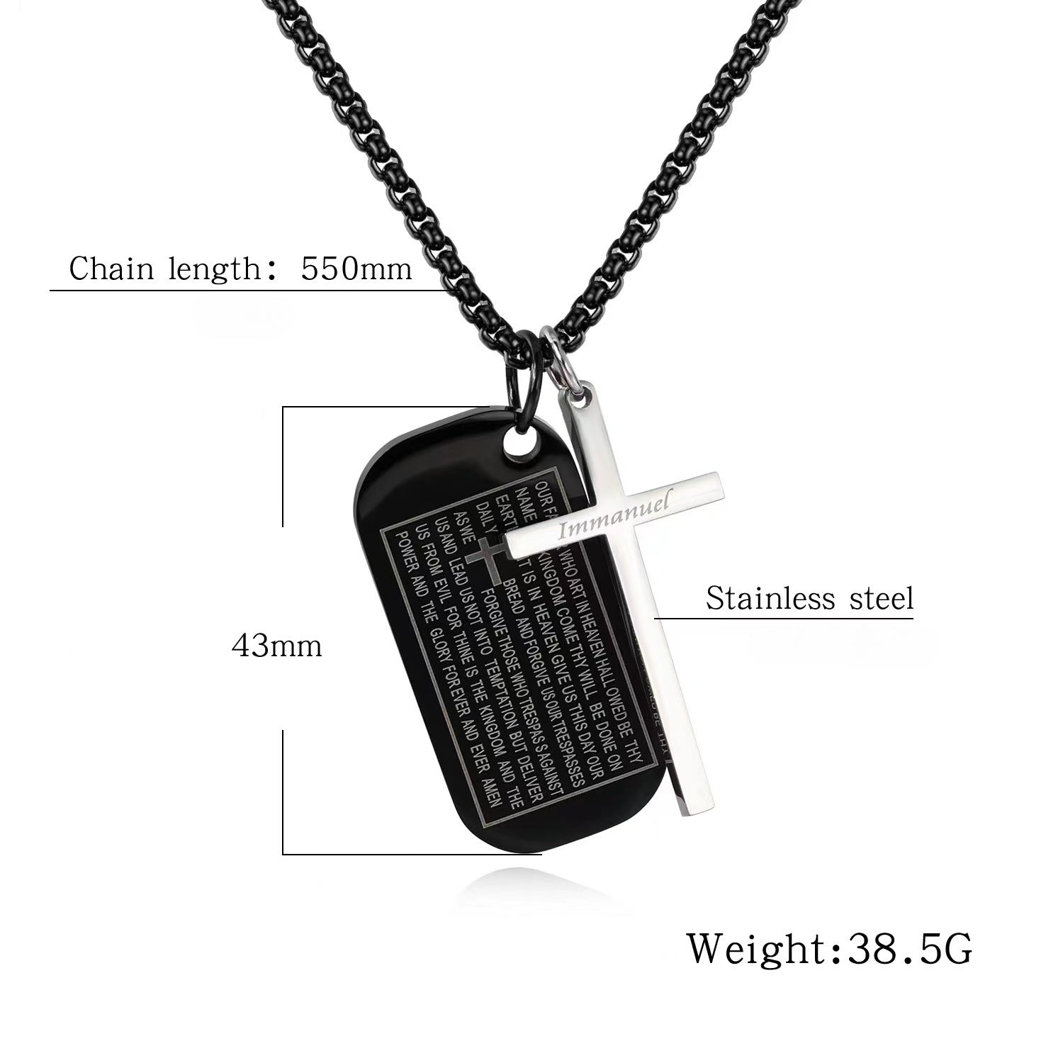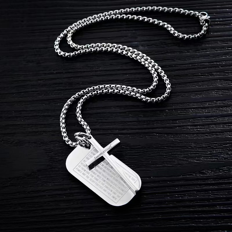 Rockyuから、信念とスタイルを同時に身にまとうクロスペンダントが登場!ステンレススチール製のシルバークロスと、聖書の一節が刻まれたドッグタグ型プレートが重なるデザインは、シンプルながらインパクト抜群。