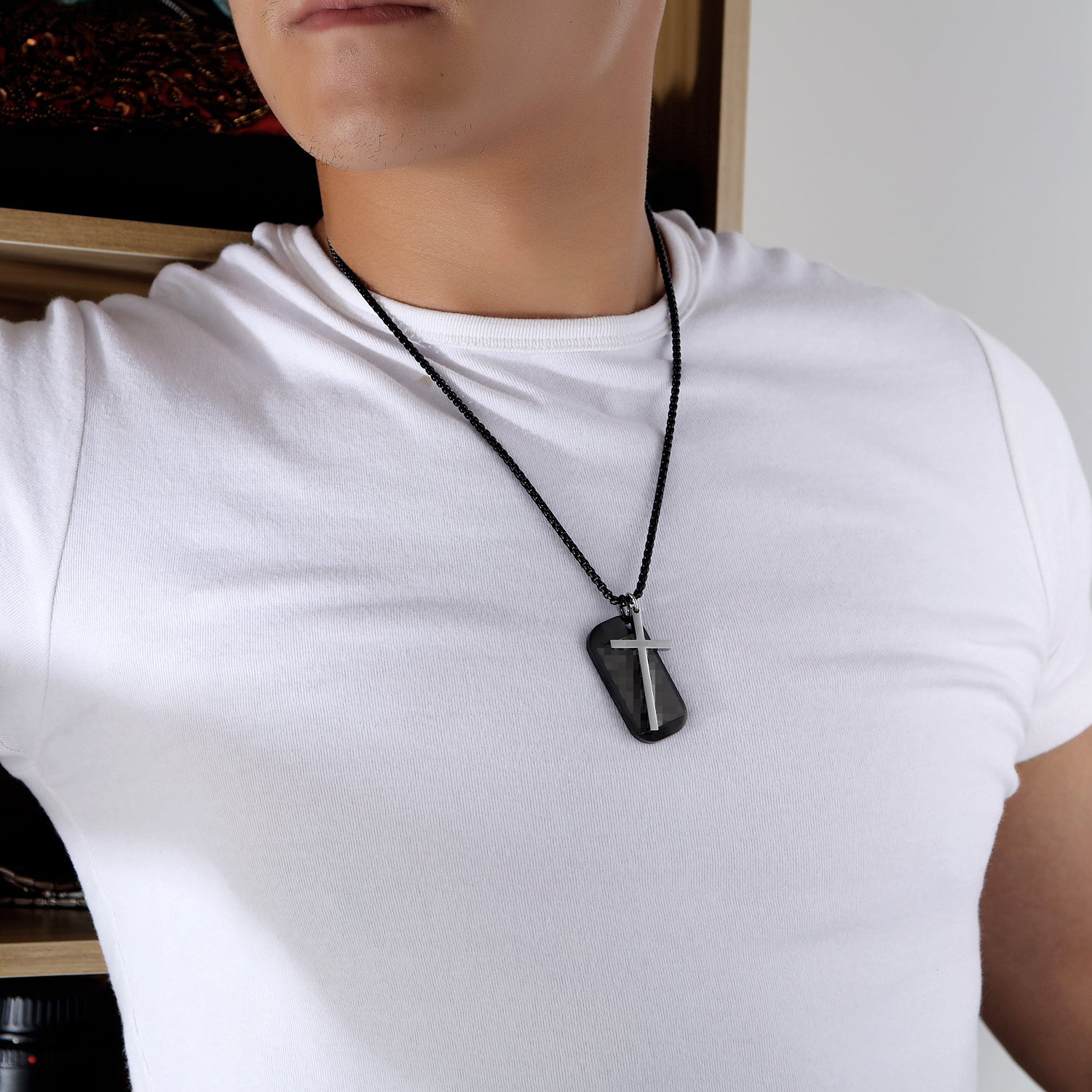 Rockyu ネックレス メンズ シルバー 十字架 クロスペンダント チタン風 プレート付き 金属アレルギー対応