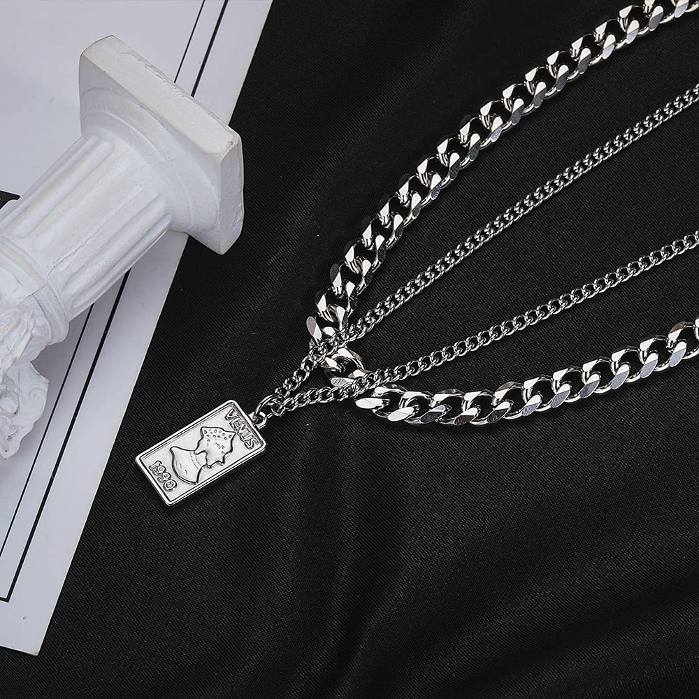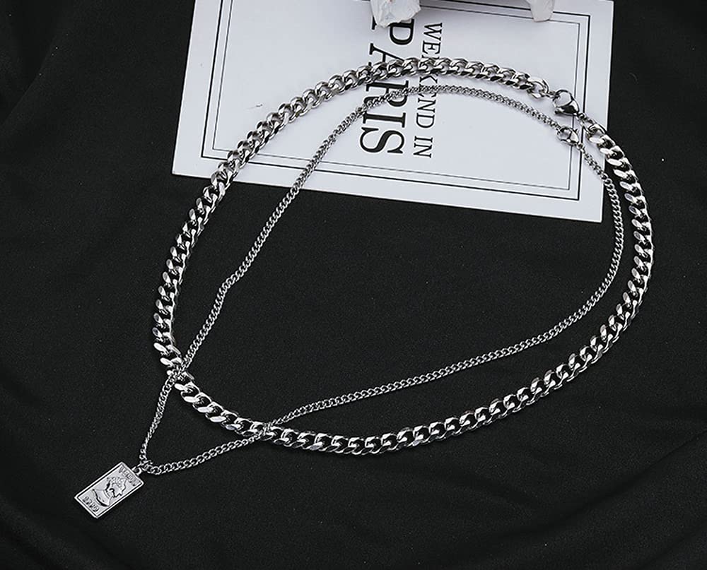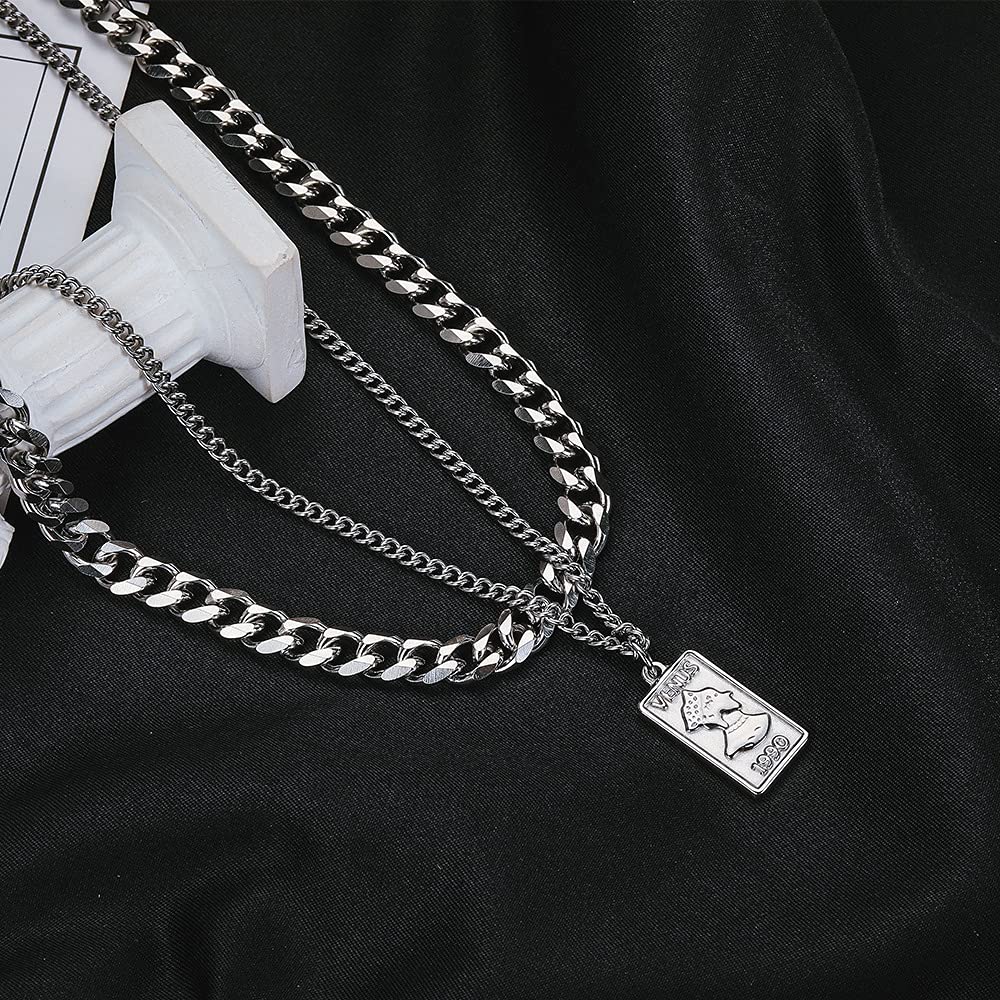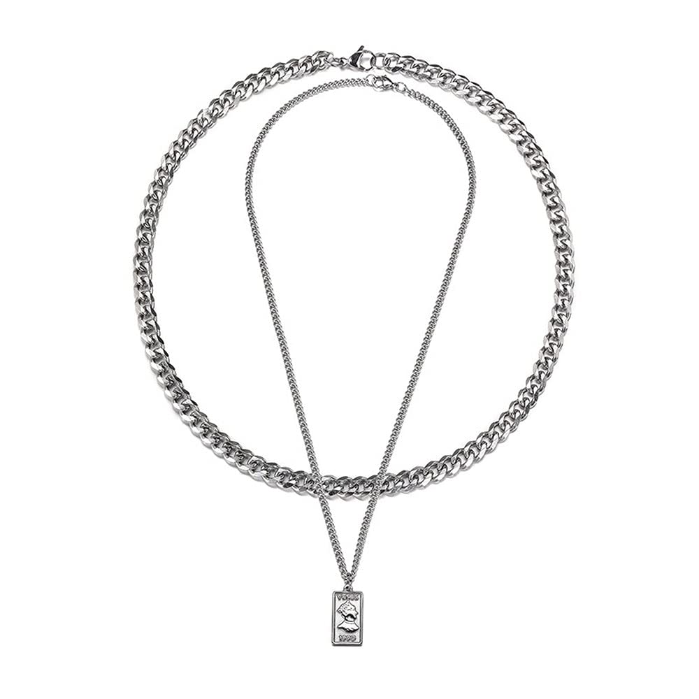 Rockyu メンズネックレス 二連チェーン シルバー ペンダント 喜平チェーンスタイル