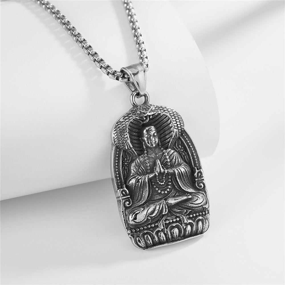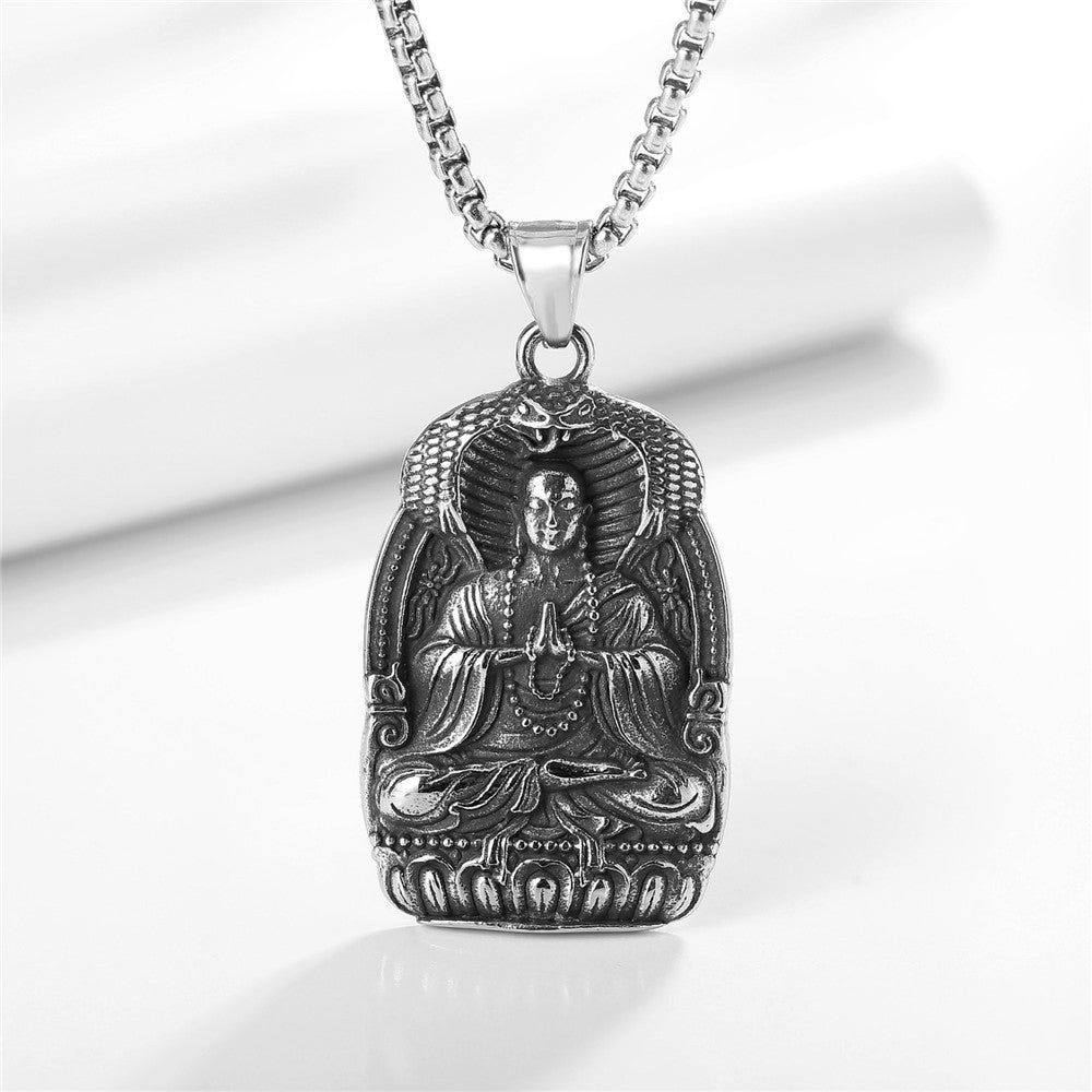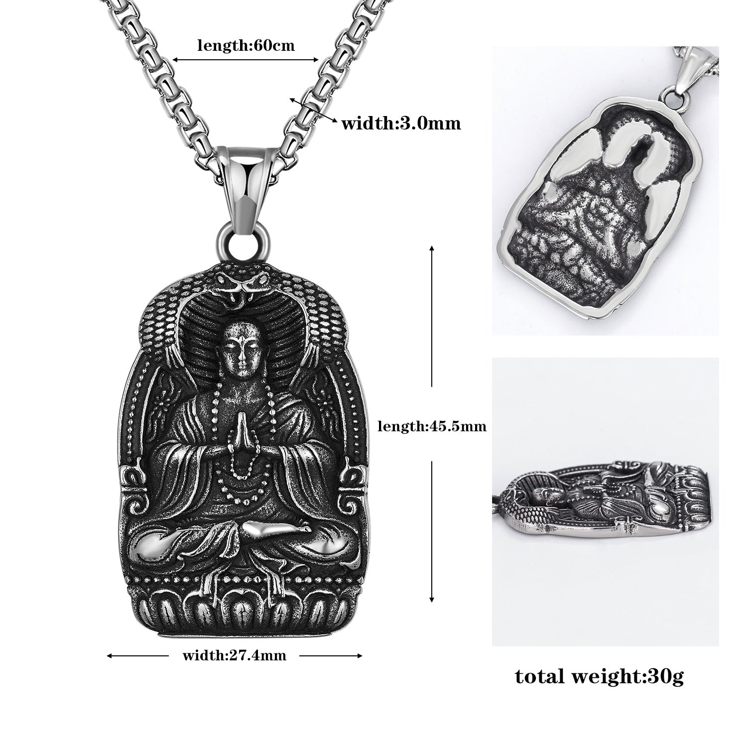 Rockyu ネックレス メンズ シルバー ステンレス 仏像 観音菩薩 ペンダント ゴシック風