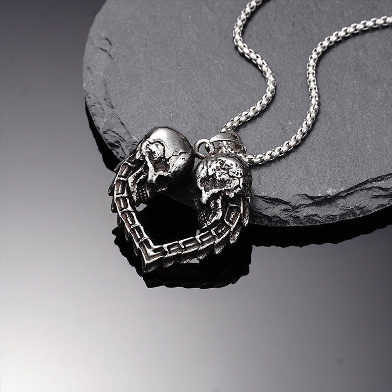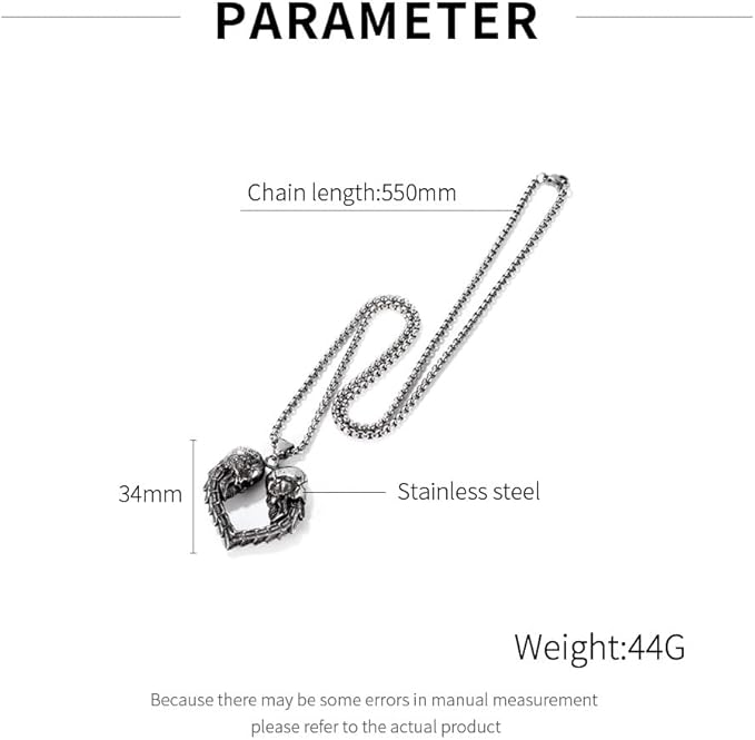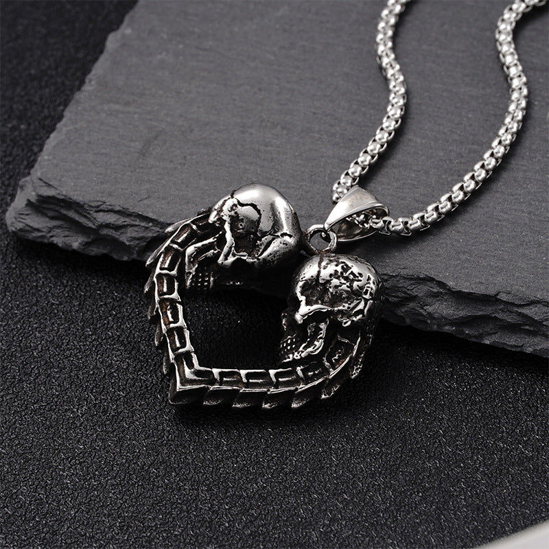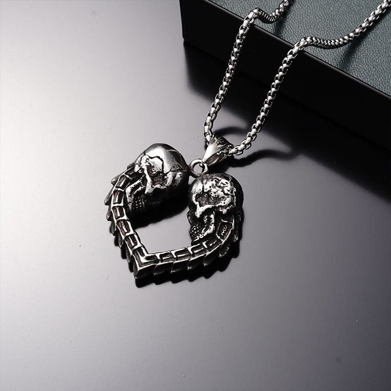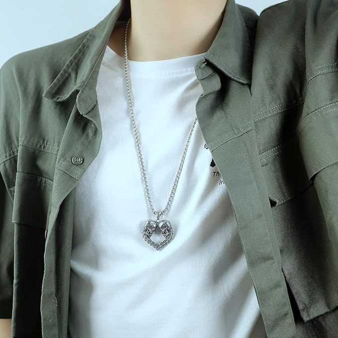 Rockyuの髑髏ハートネックレスは、二つの髑髏が向かい合い、骨で象られたハートを形成するユニークなデザイン。ステンレス製ならではの重厚感と耐久性があり、ロックやストリート、レトロファッションに映える存在感を放ちます。ペンダントサイズは約34mm、チェーン長は約55cmで男女問わず着用しやすいバランス。金属アレルギーに配慮した素材を使用し、肌にやさしく長時間の着用も快適。精巧な彫刻が施された髑髏は、角度によって異なる陰影を見せ、コーディネートの主役として活躍します。日常使いはもちろん、ライブやイベント、パーティーシーンでも存在感を発揮。自分用にも、大切な人へのプレゼントにも心に残るアクセサリーです。