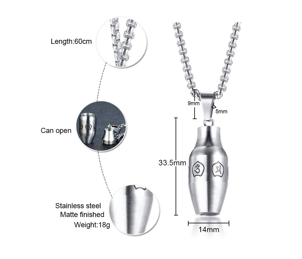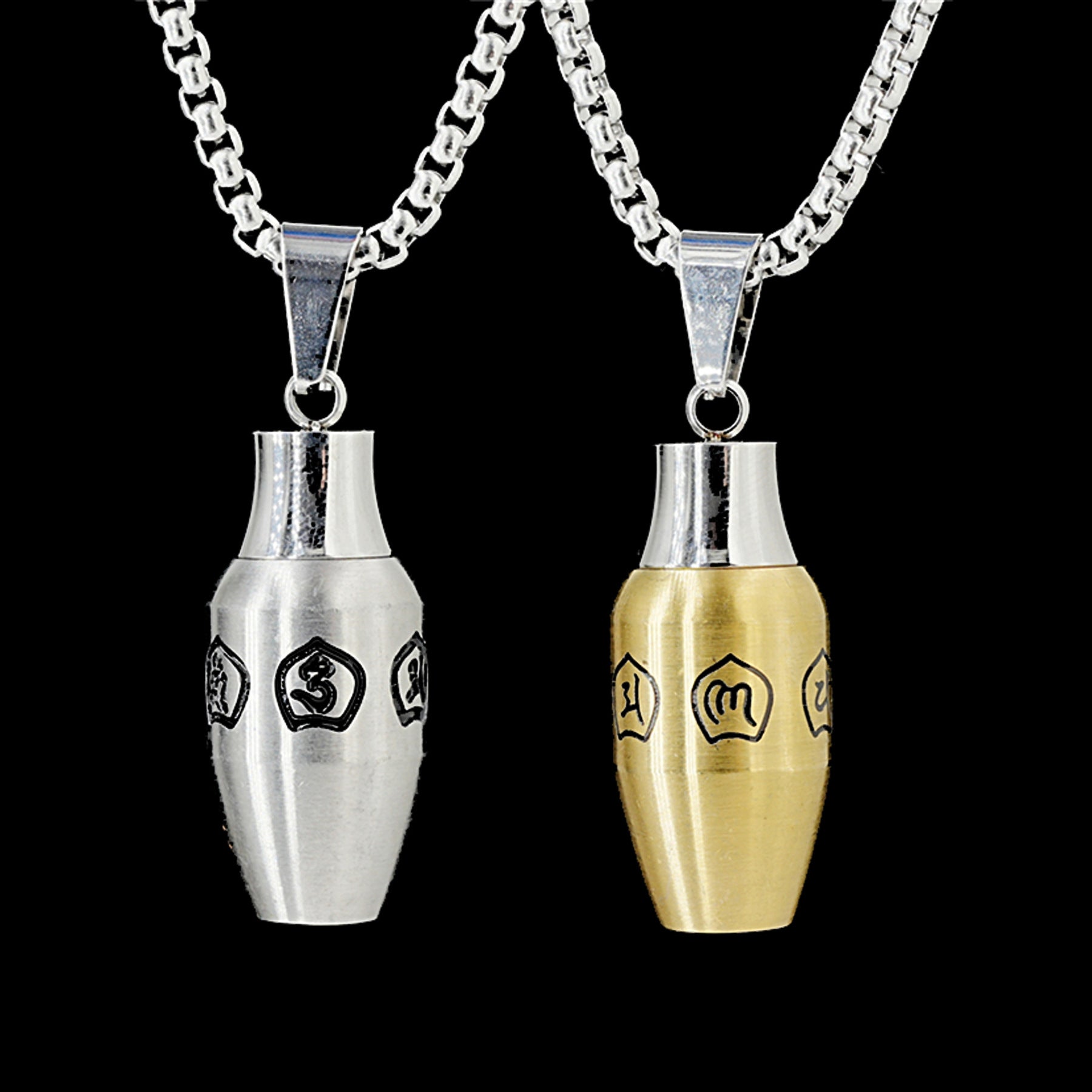 Rockyu 六字真言 遺骨ペンダント メンズ ステンレス 手元供養 ネックレス