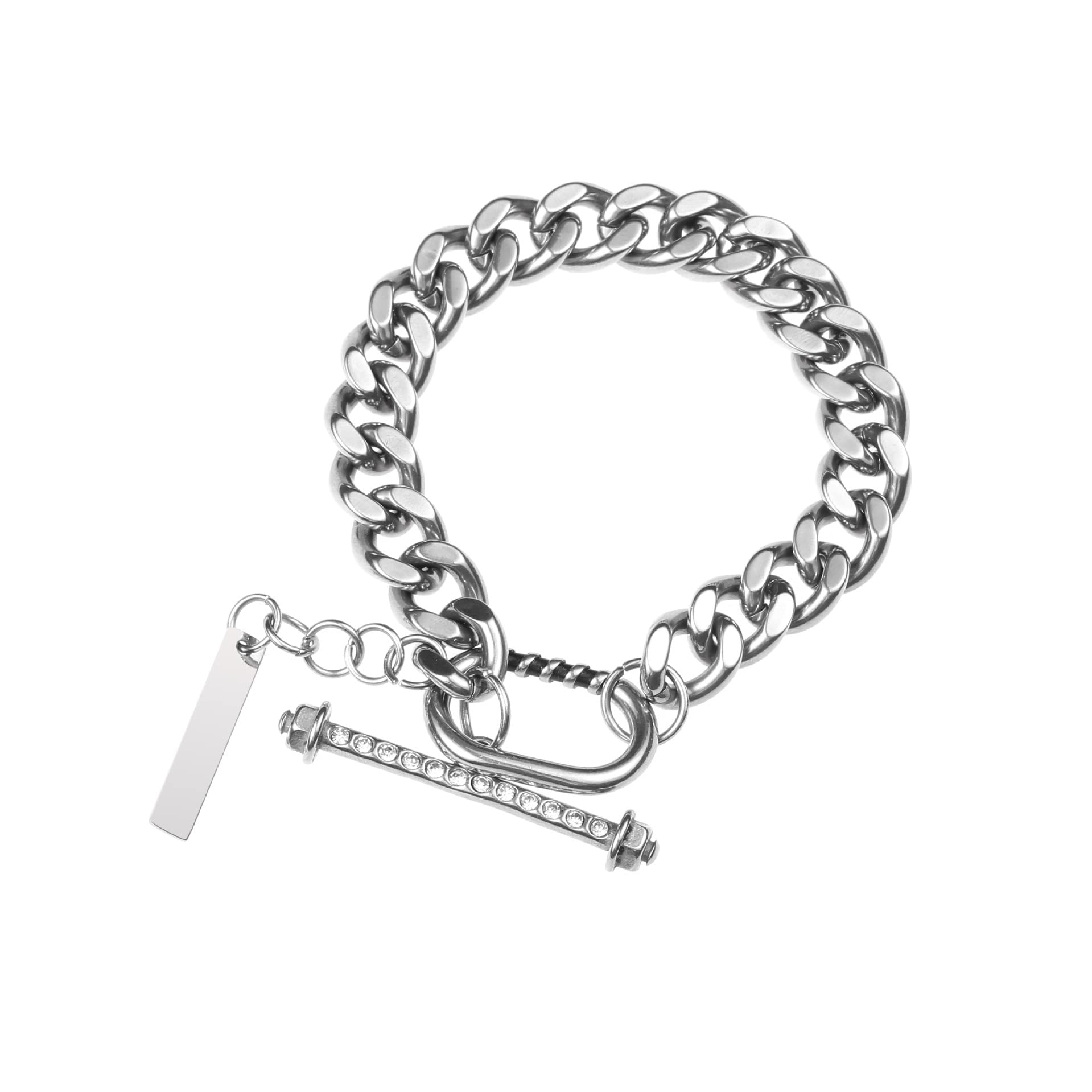 Rockyu が贈るシルバーチェーンネックレスは、太めの喜平チェーンにマンテル留め具とバーペンダントを組み合わせた、存在感抜群のデザイン。無駄を削ぎ落としたシンプルなシルエットの中に、程よい重厚感と個性を宿した一本です。