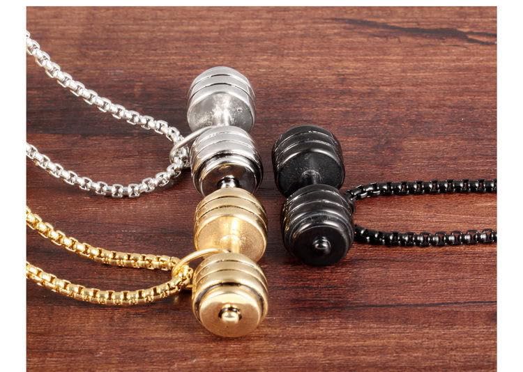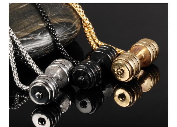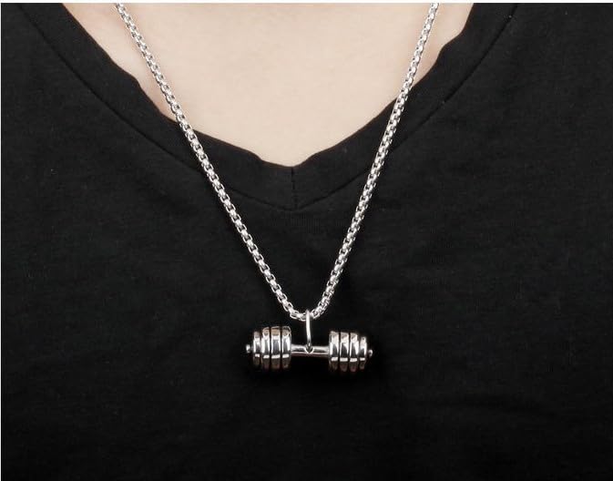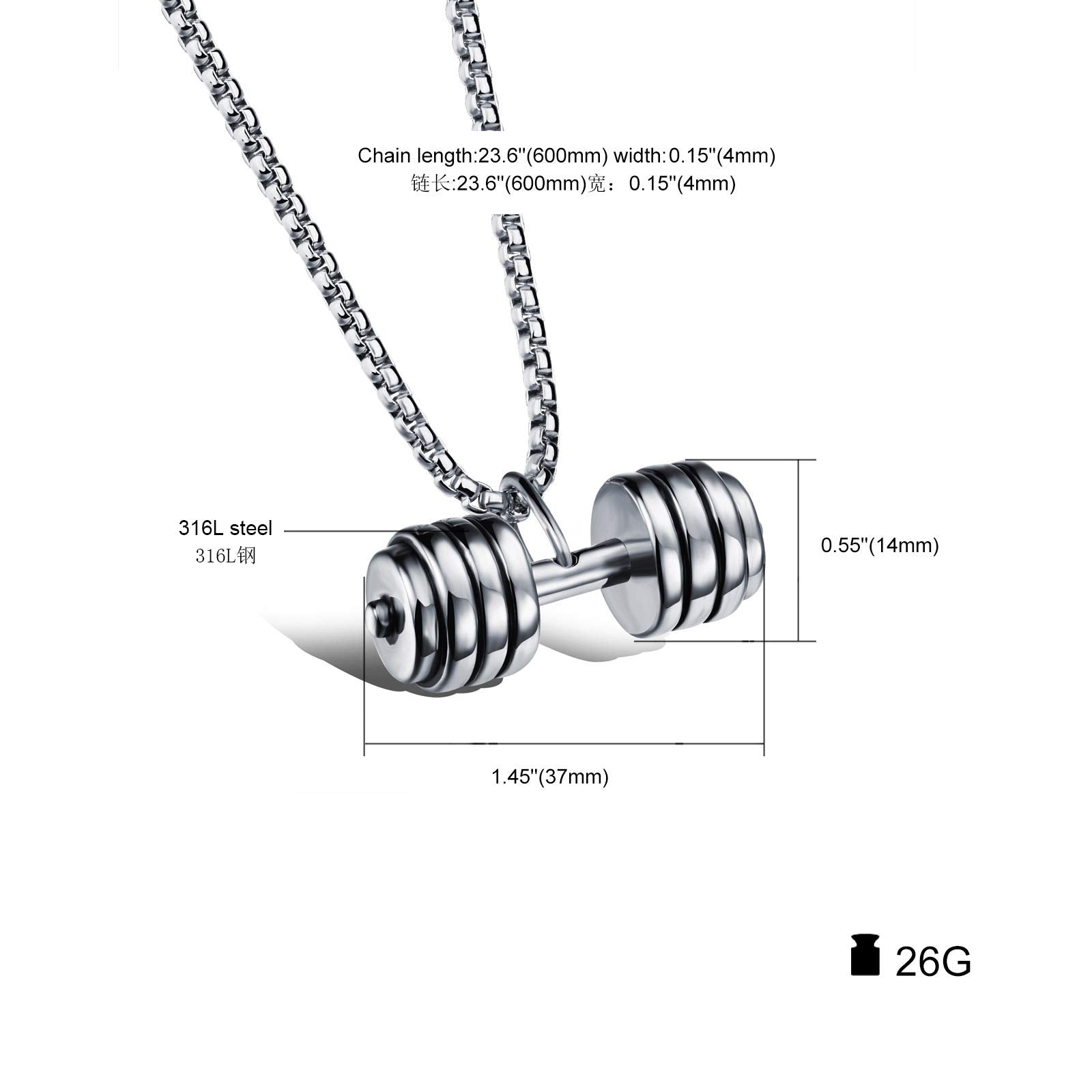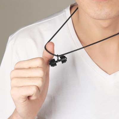 Rockyu ネックレス メンズ ダンベル ペンダント ステンレス製 チタン仕上げ スポーツモチーフ