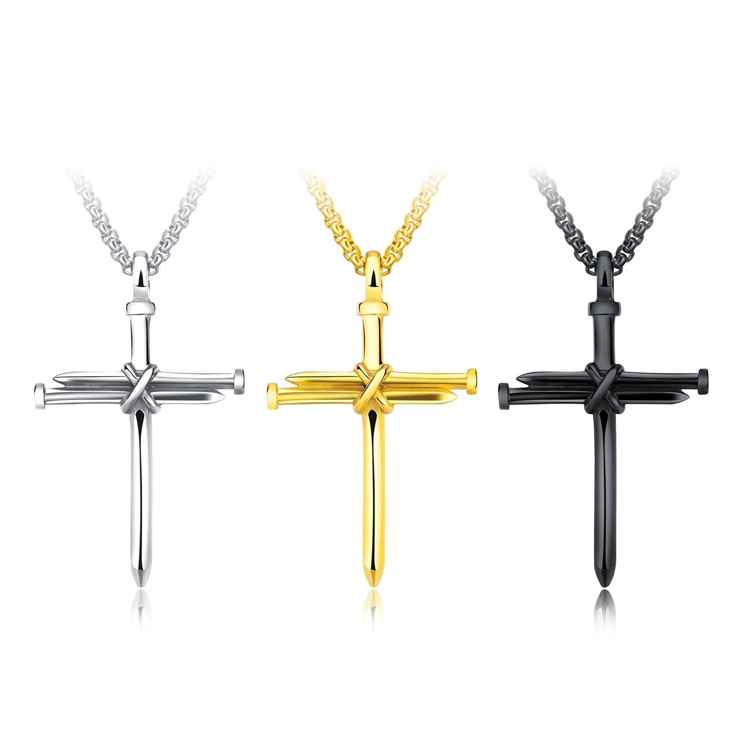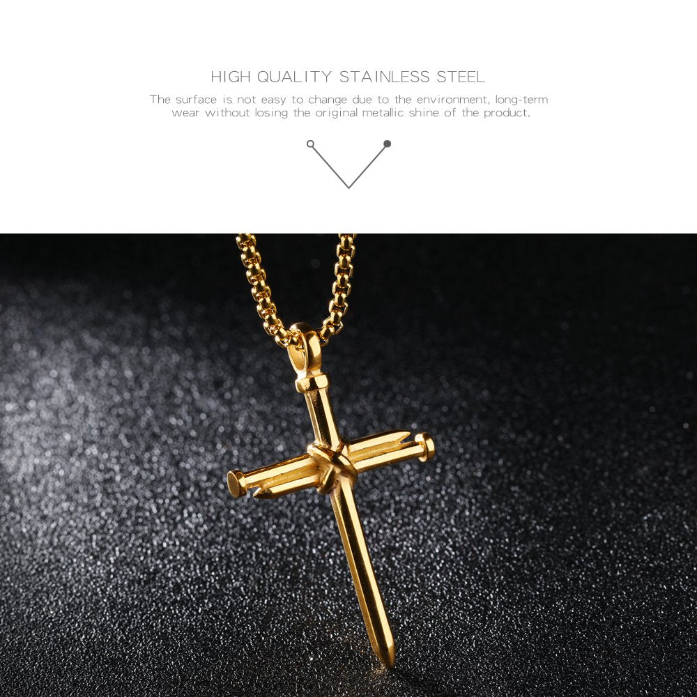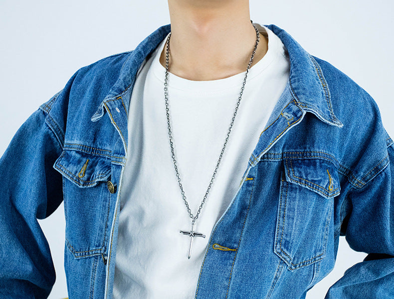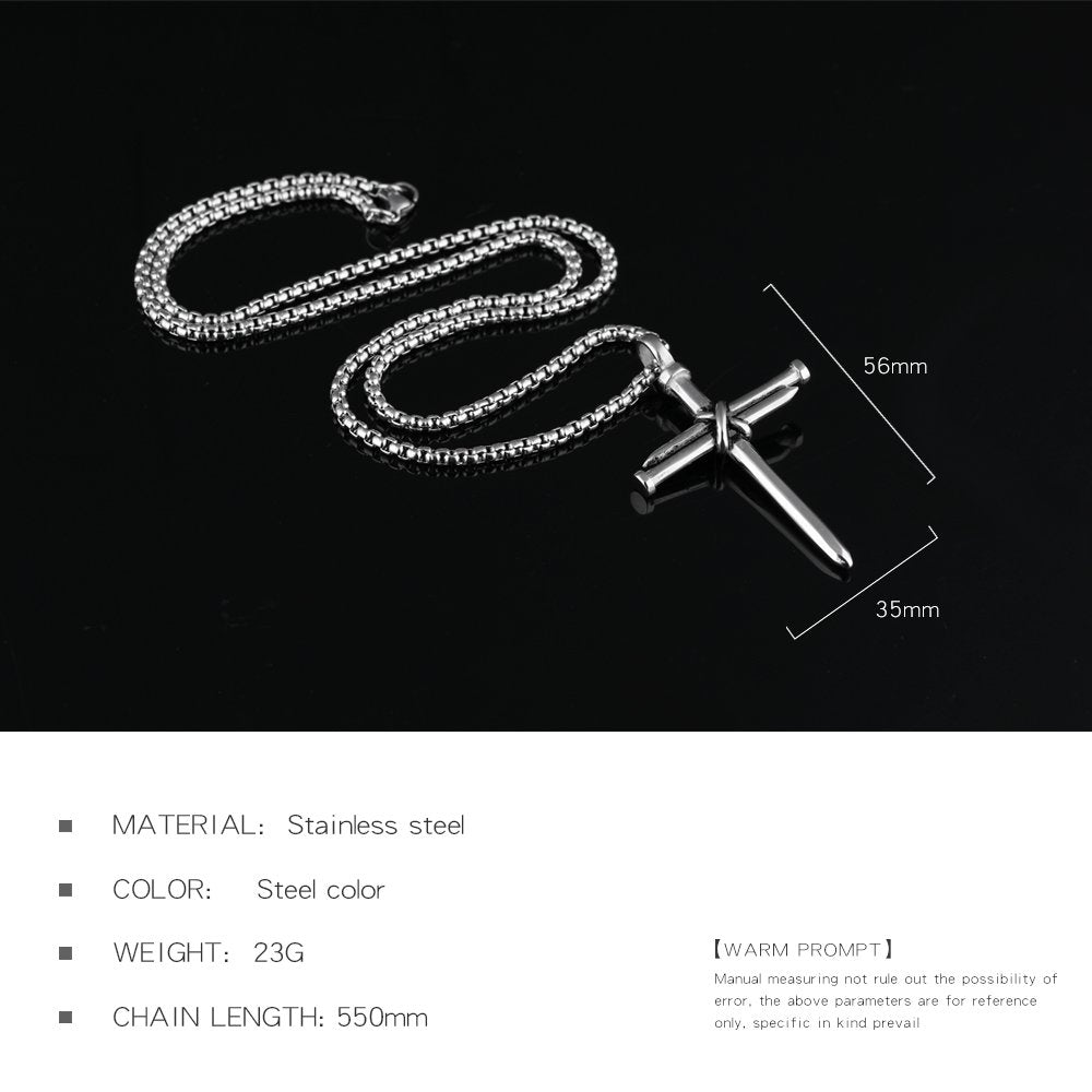 Rockyu クロスペンダントネックレス|ステンレス製十字架モチーフ メンズアクセ