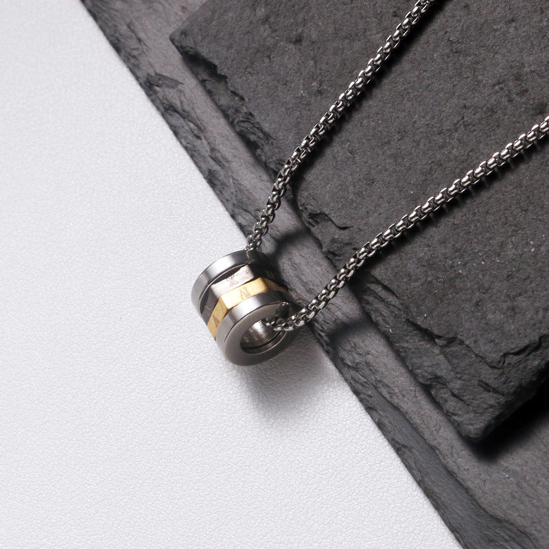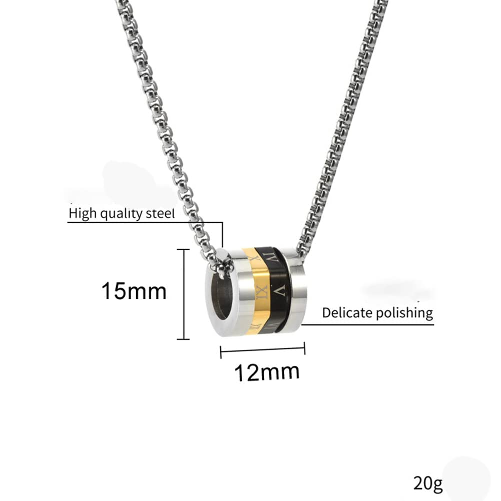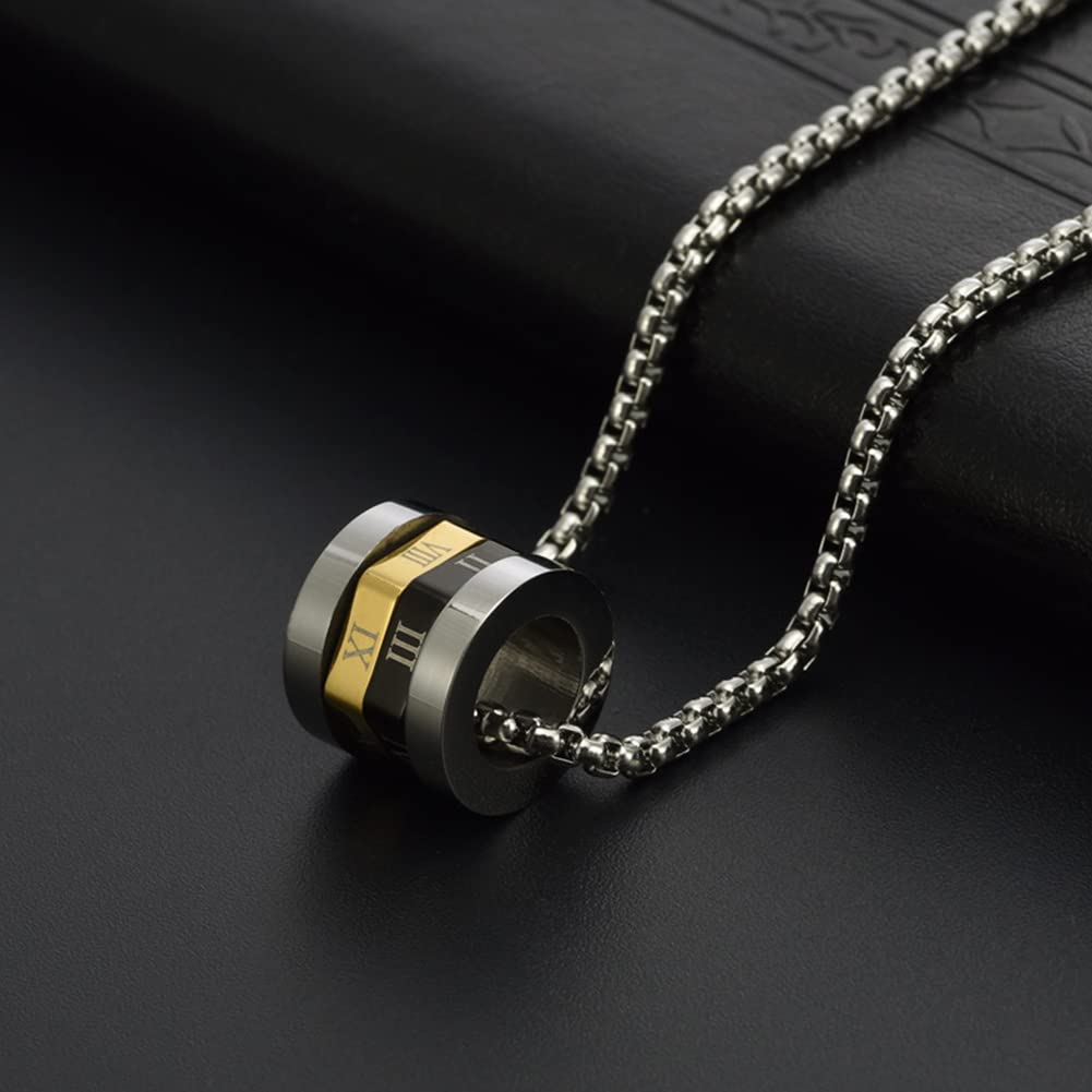 Rockyu ネックレス メンズ ブランド シルバー ローマ字 回転可能 ローマ数字ネックレス ゴールド ブラック リングペンダント チタン