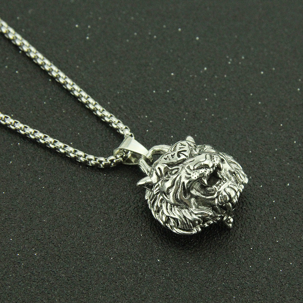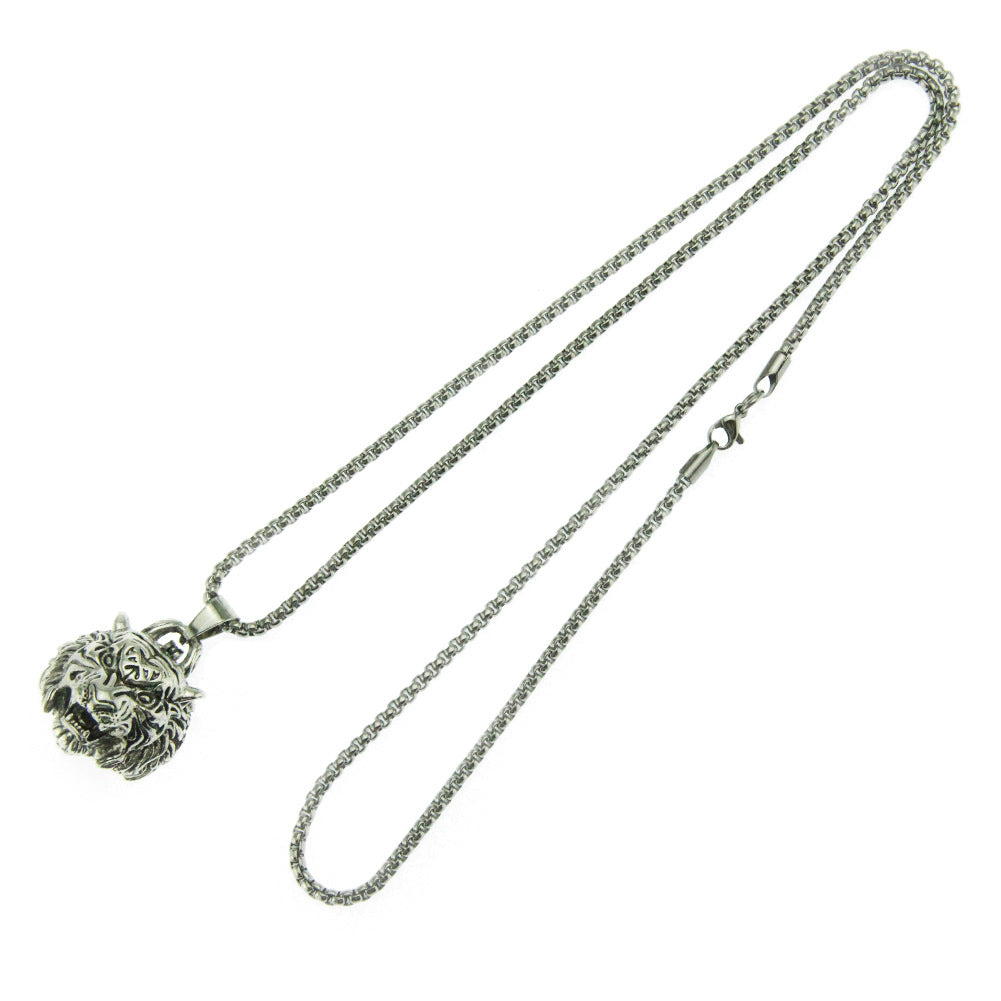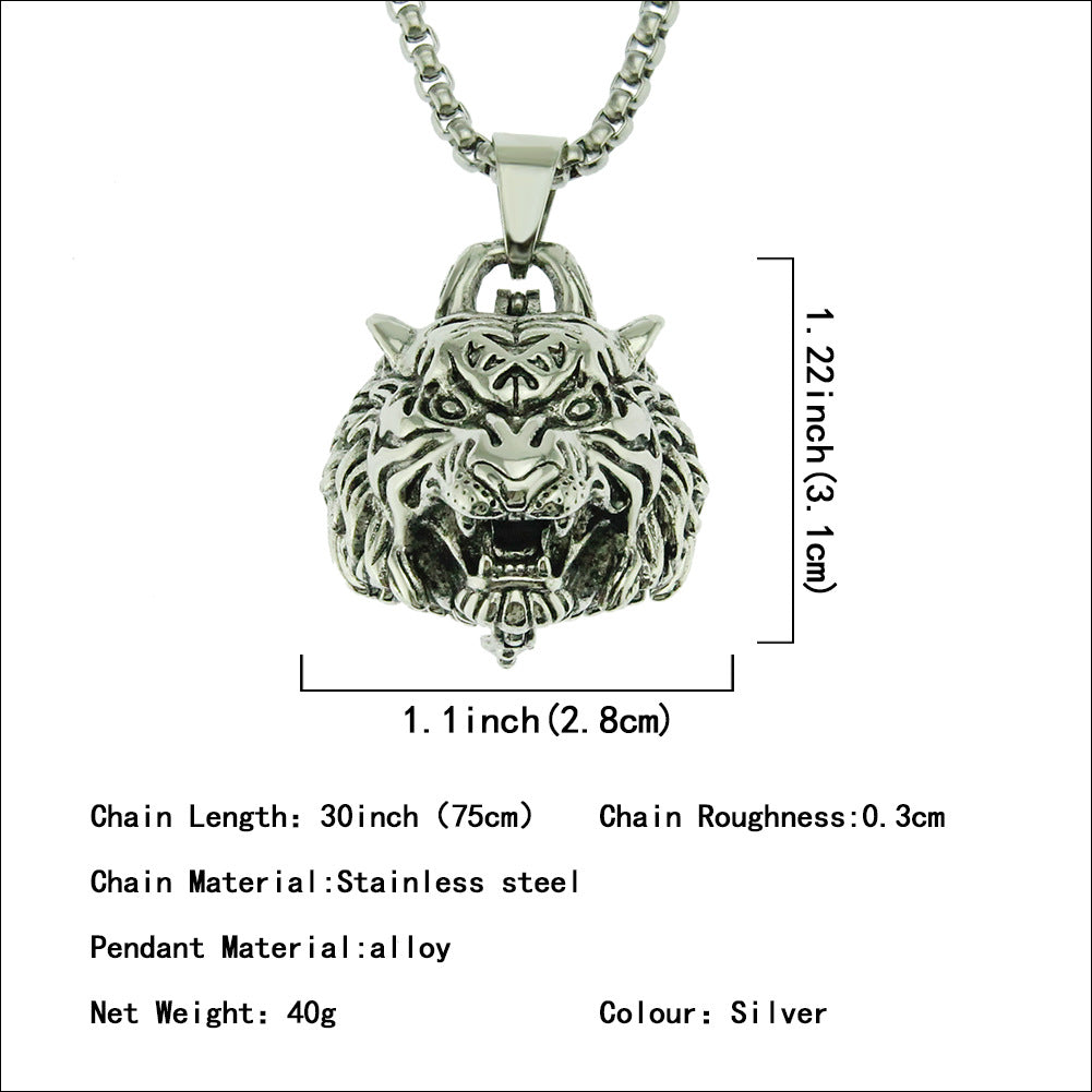 Rockyu ネックレス メンズ タイガーヘッド シルバー合金 ステンレスチェーン