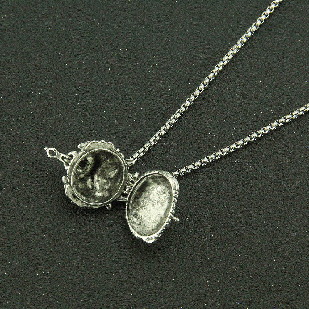 チェーンはステンレススチール製でサビに強く、毎日のファッションにタフに寄り添う仕様。ペンダント部分はしっかりと重量感のある合金で作られており、シルバーカラーの輝きが胸元を一気にスタイリッシュに引き締めます。