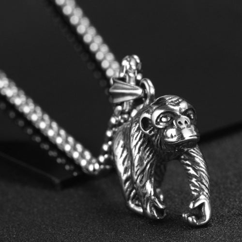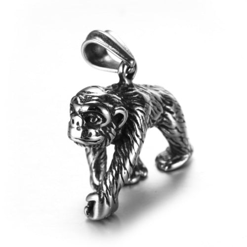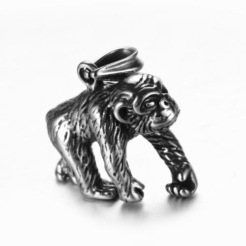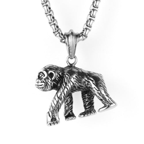 Rockyu ゴリラモチーフネックレス|ステンレス製リアル造形メンズペンダント