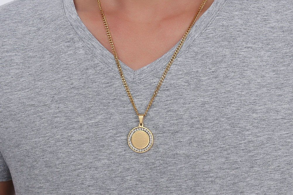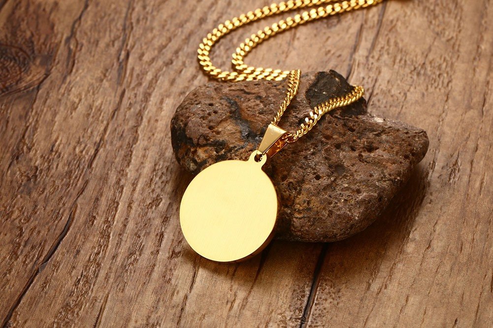 Rockyu 真経ラウンドコインネックレス【18金仕上げ・メンズペンダント】