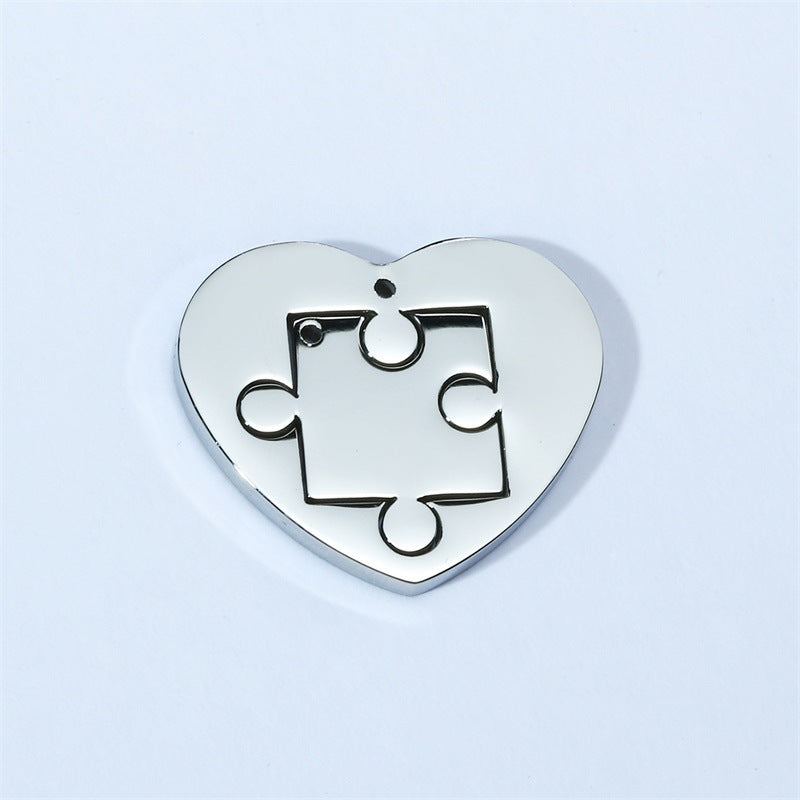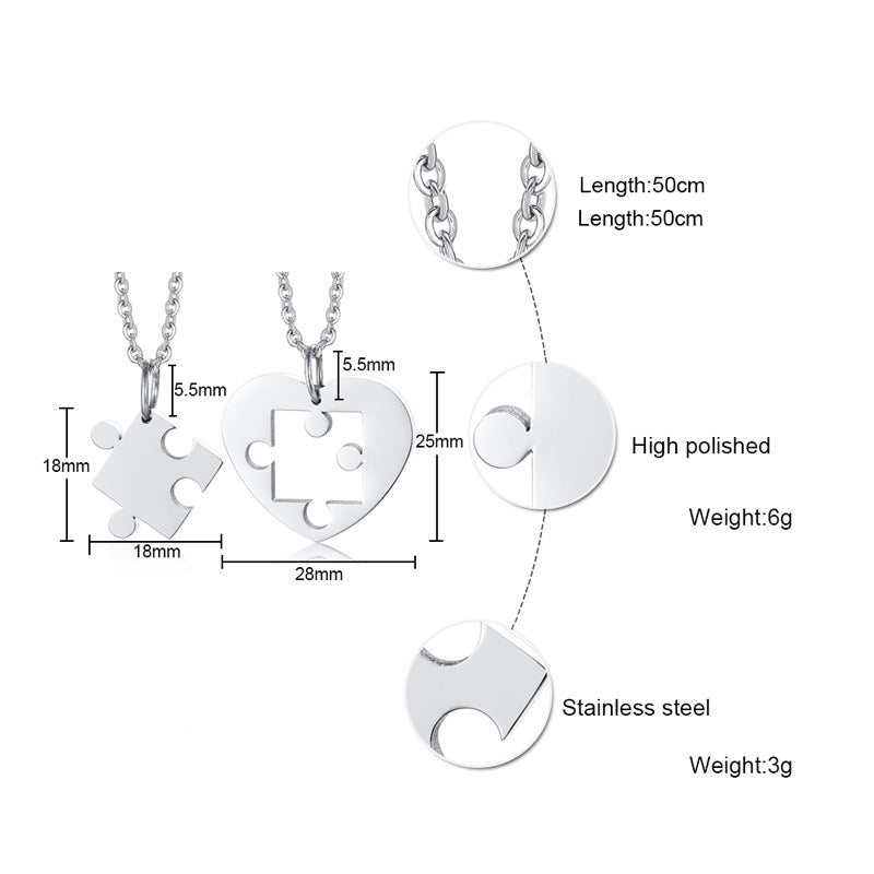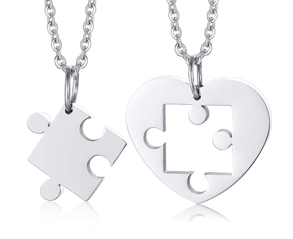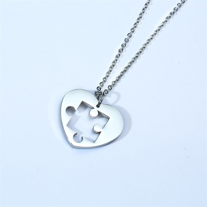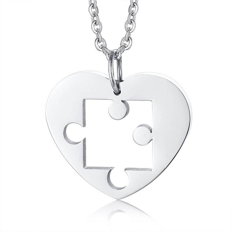 Rockyu パズルネックレス ハート&ピース チタン製ペアペンダント 金属アレルギー対応