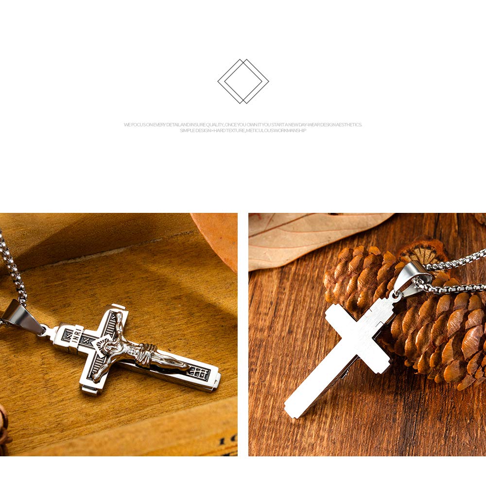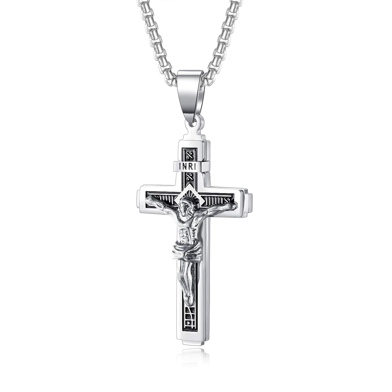 Rockyu ネックレス メンズ 十字架 ステンレス シルバー ゴールド クロスペンダント アンティーク風