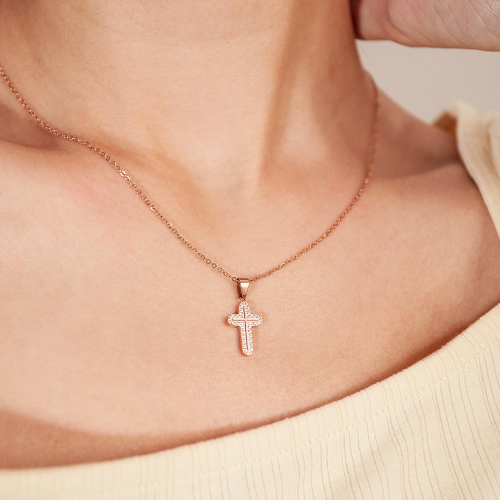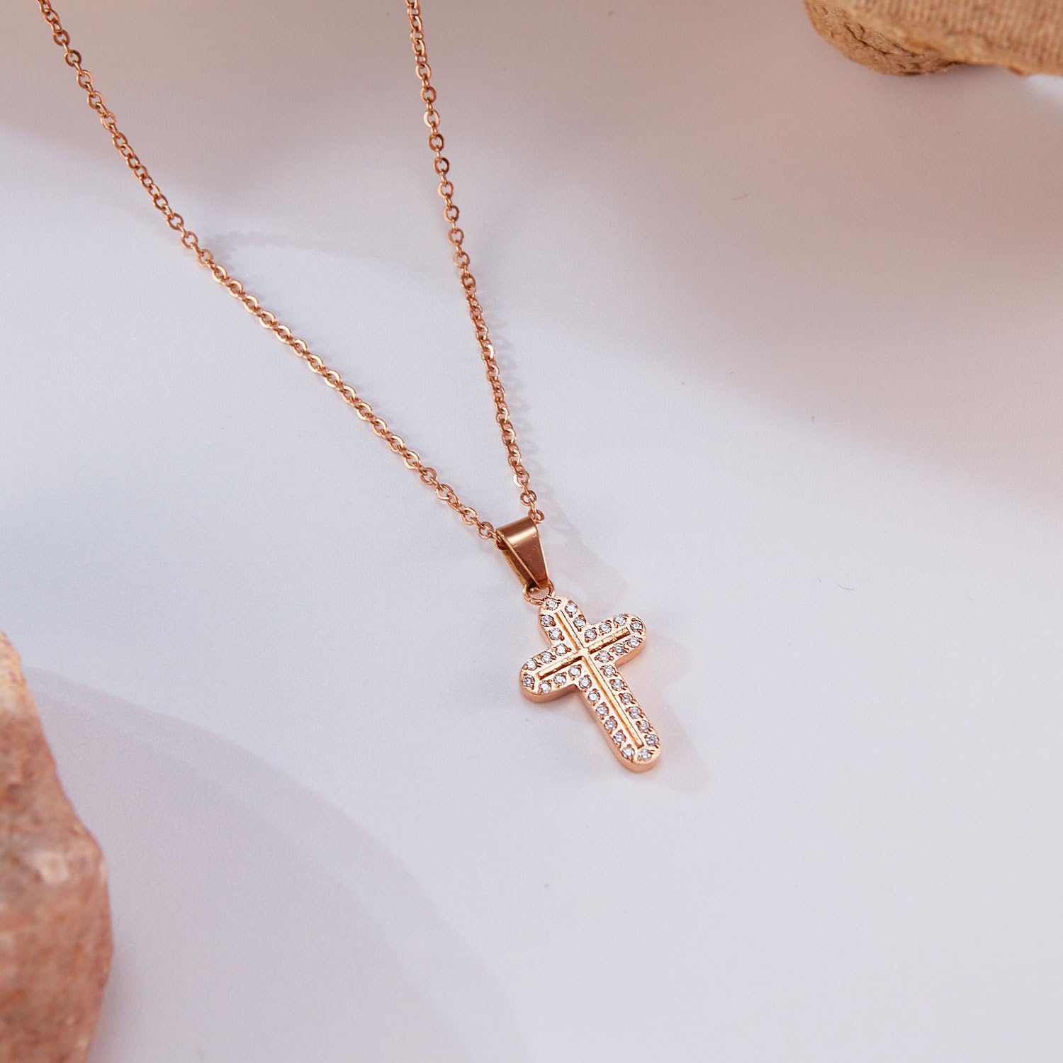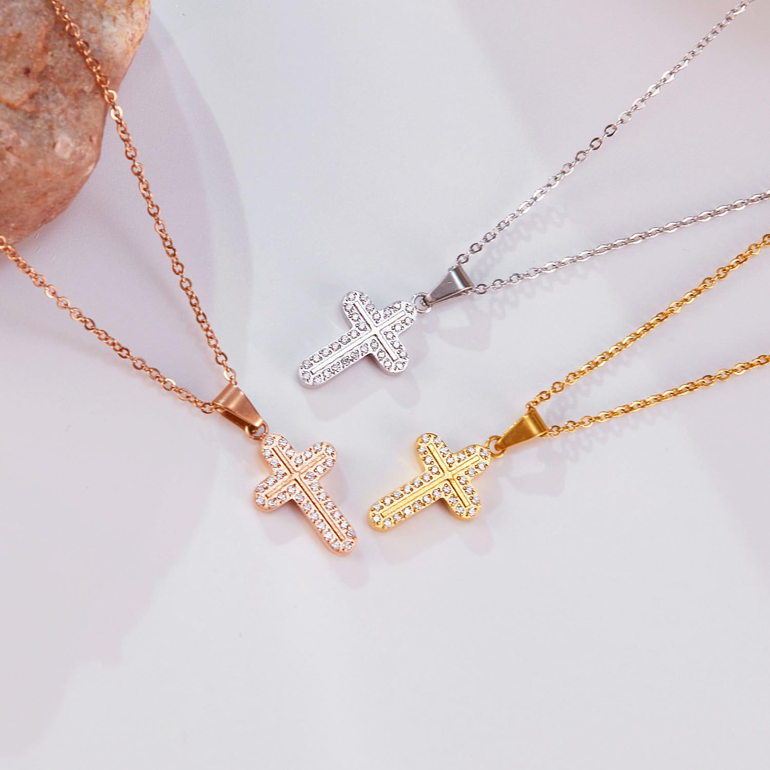 Rockyu クロスネックレス レディース|ジルコニア輝く十字架ペンダント 金属アレルギー対応