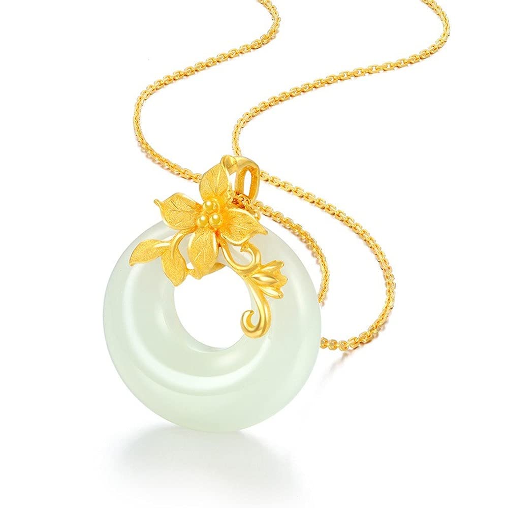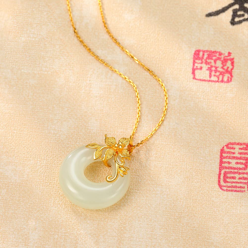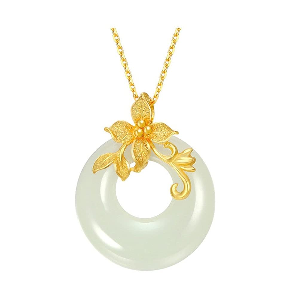 Rockyu ネックレス レディース 金花 ホワイトジェイド 円型 18金メッキ ペンダント