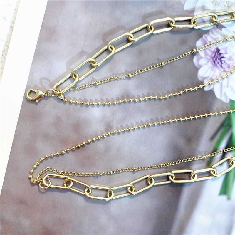 Rockyuのレディースネックレスは、存在感のある三連チェーンデザイン。