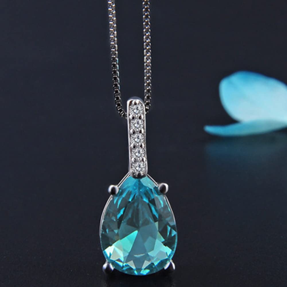 Rockyu ネックレス レディース 青い雫ペンダント シルバー ジルコニア 大粒 ベネチアンチェーン