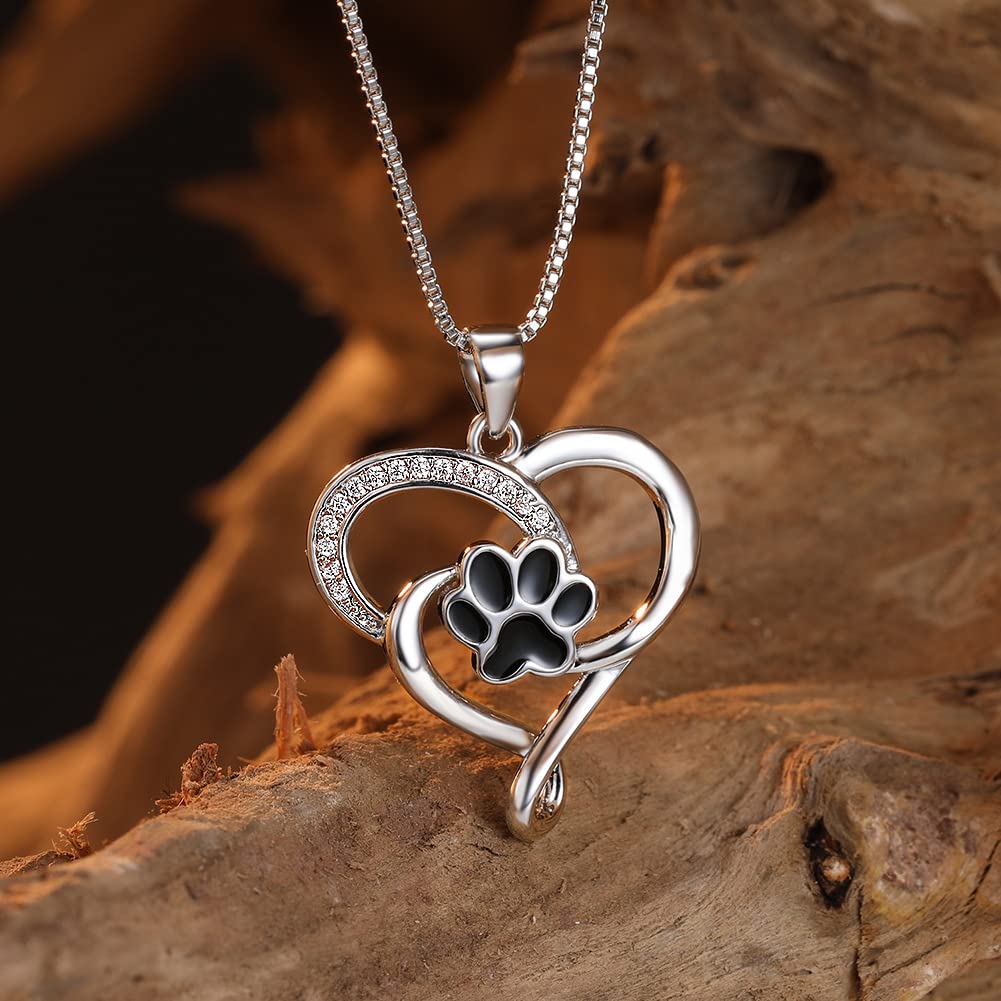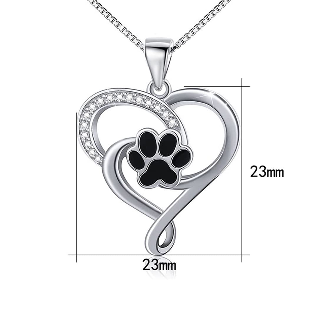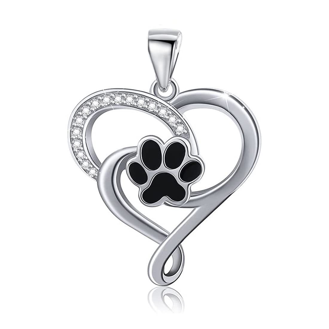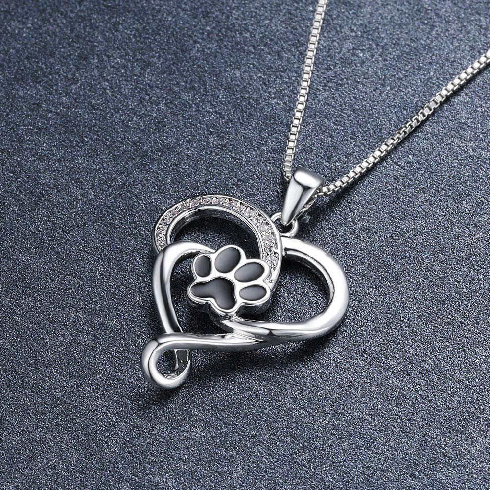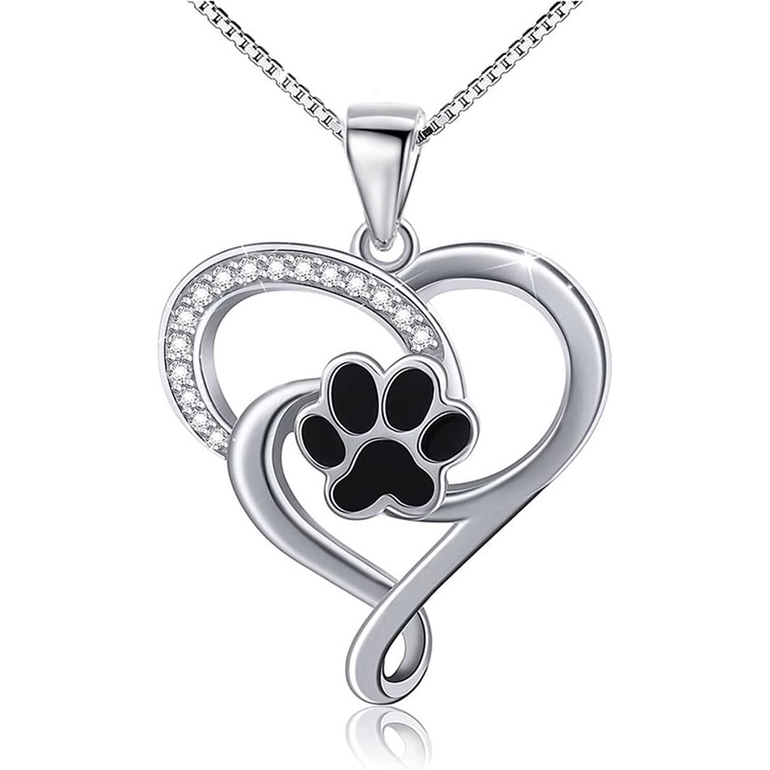 Rockyu ネックレス レディース シルバー925 ハート ペンダント 肉球 ジルコニア入り おしゃれ アクセサリー