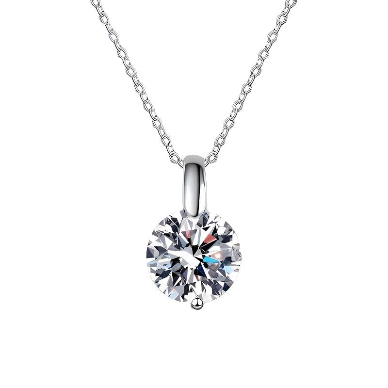 Rockyu 一粒ネックレス レディース モアサナイト&高炭素ダイヤ風 シルバー925製 ラウンドカット