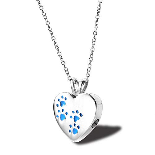 Rockyu ネックレス レディース ハートペンダント ステンレス シルバー ブルー 足跡 メモリアル 遺骨ペンダント