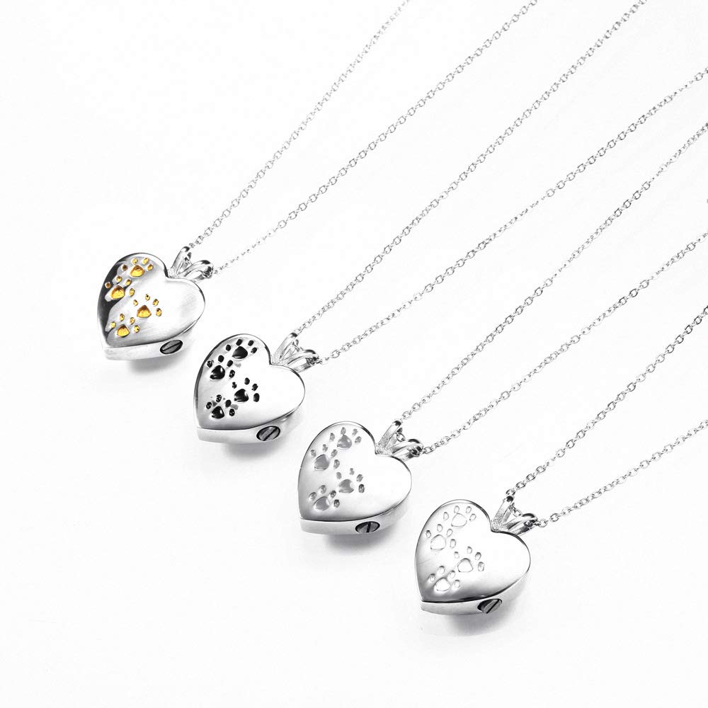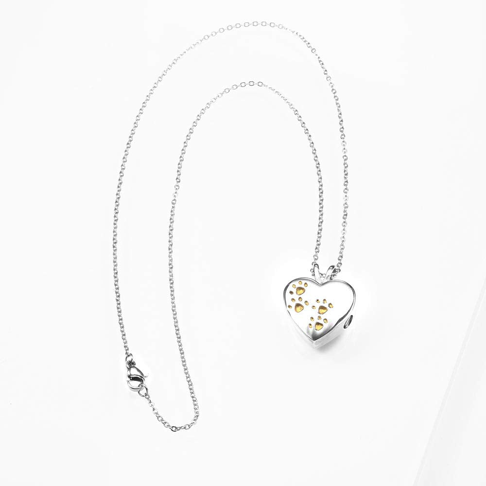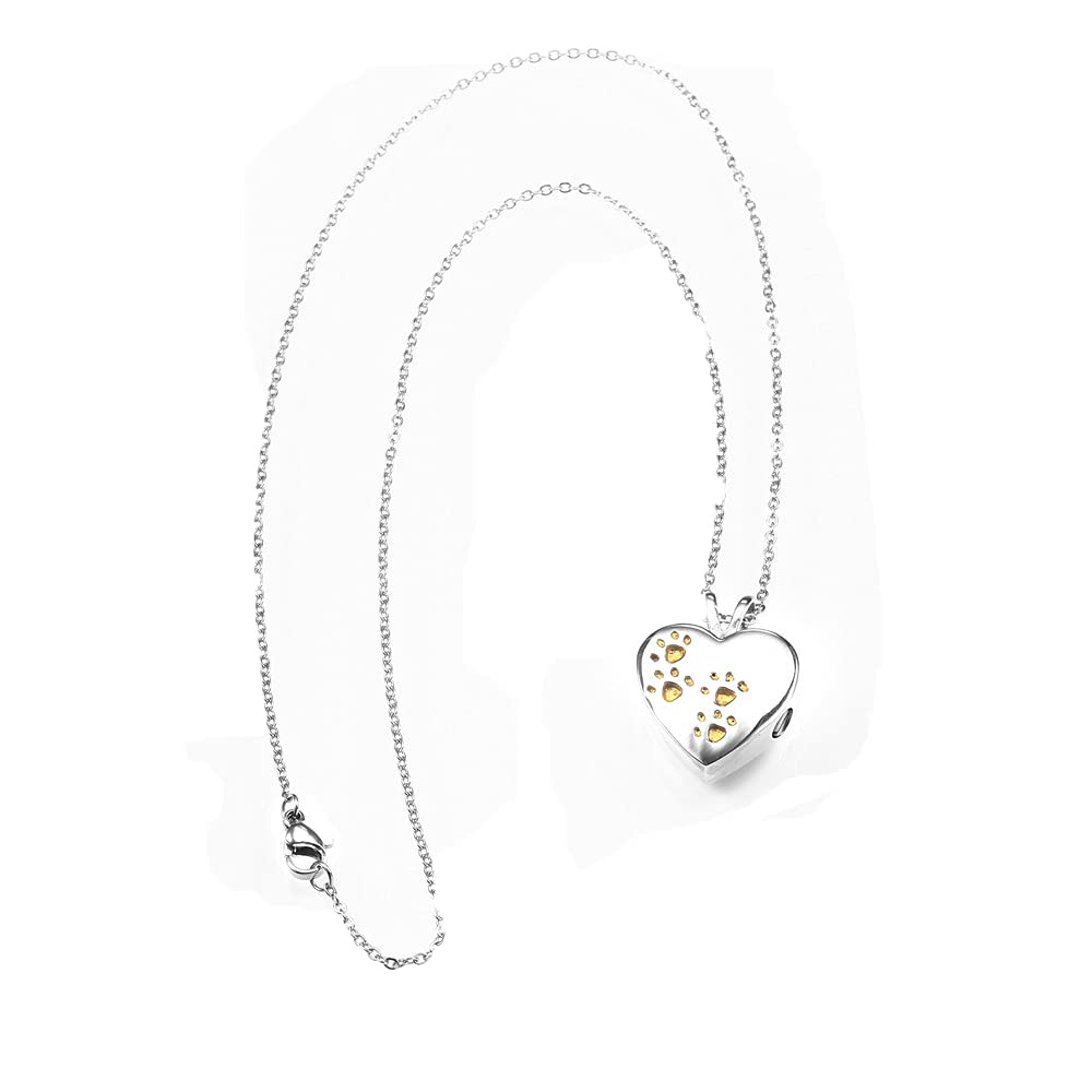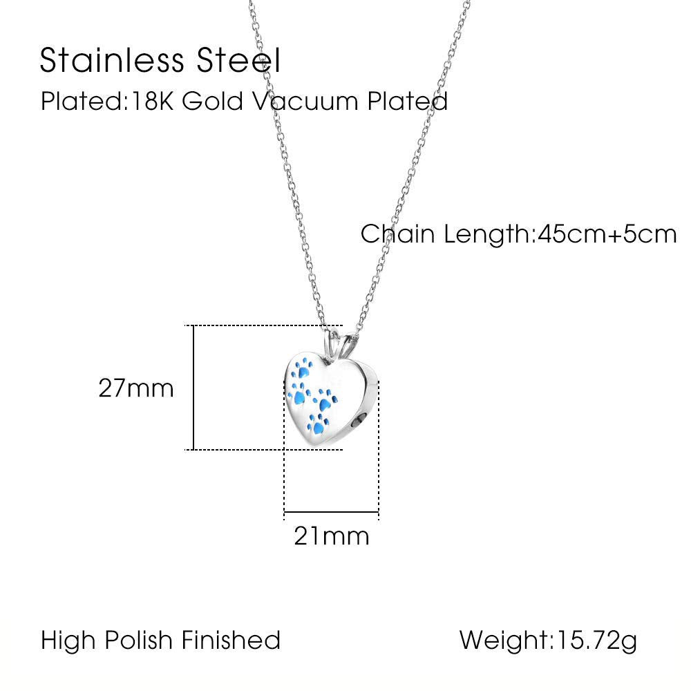 Rockyu が贈るメモリアルネックレスは、大切な存在との絆を胸元に刻む特別なアクセサリー。シルバーのハートにブルーの足跡をデザインし、犬や猫など大切なペットを想わせる優しいモチーフが印象的です。ステンレス製でサビや変色に強く、18Kゴールド真空メッキ仕上げにより上品な輝きを長く保ちます。ペンダント部分は取り外しが可能で、手元供養や小さな遺骨・思い出の品を納められる仕様。鏡面加工で仕上げられた美しい輝きは、普段使いしながら大切な人やペットを常に感じられる安心感を与えてくれます。Rockyu のメモリアルネックレスは、心を癒すお守りのような存在であり、自分用はもちろん大切な方への思いを込めたギフトにもおすすめです。