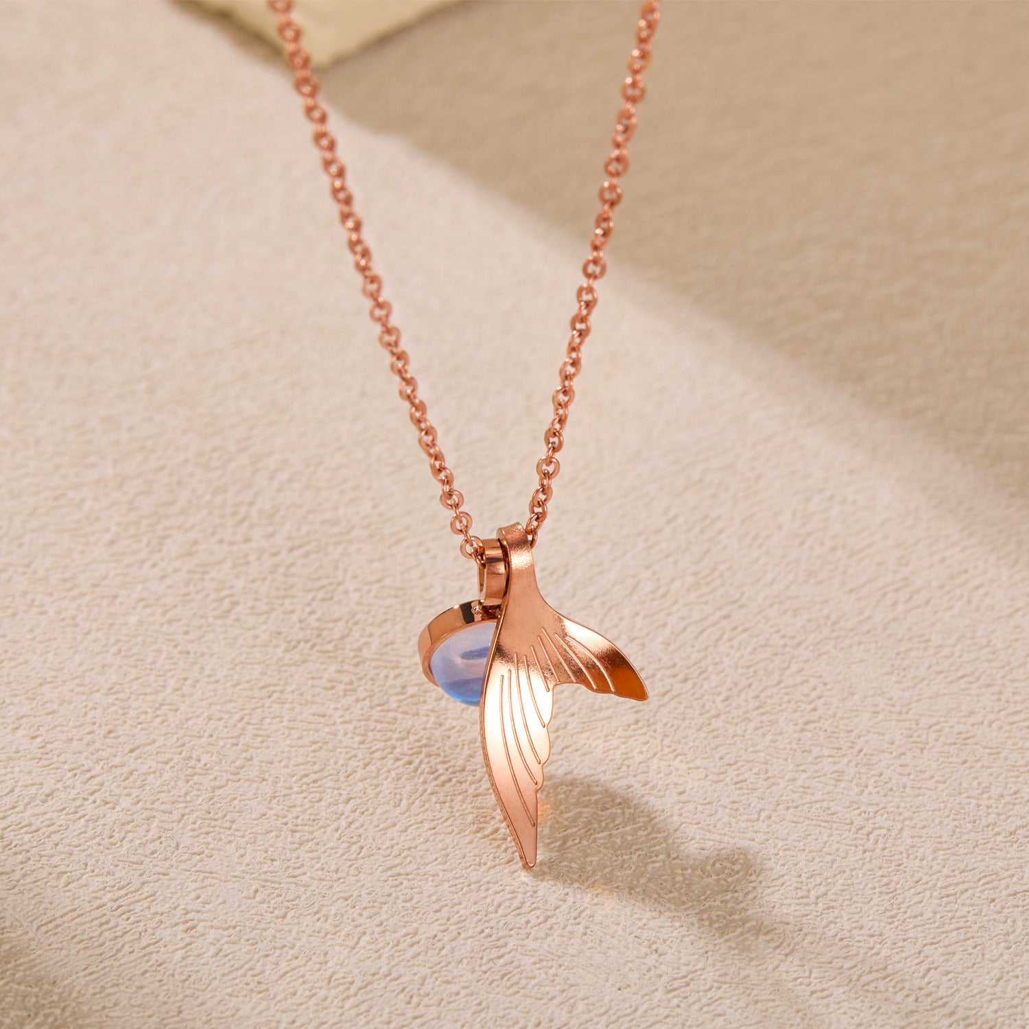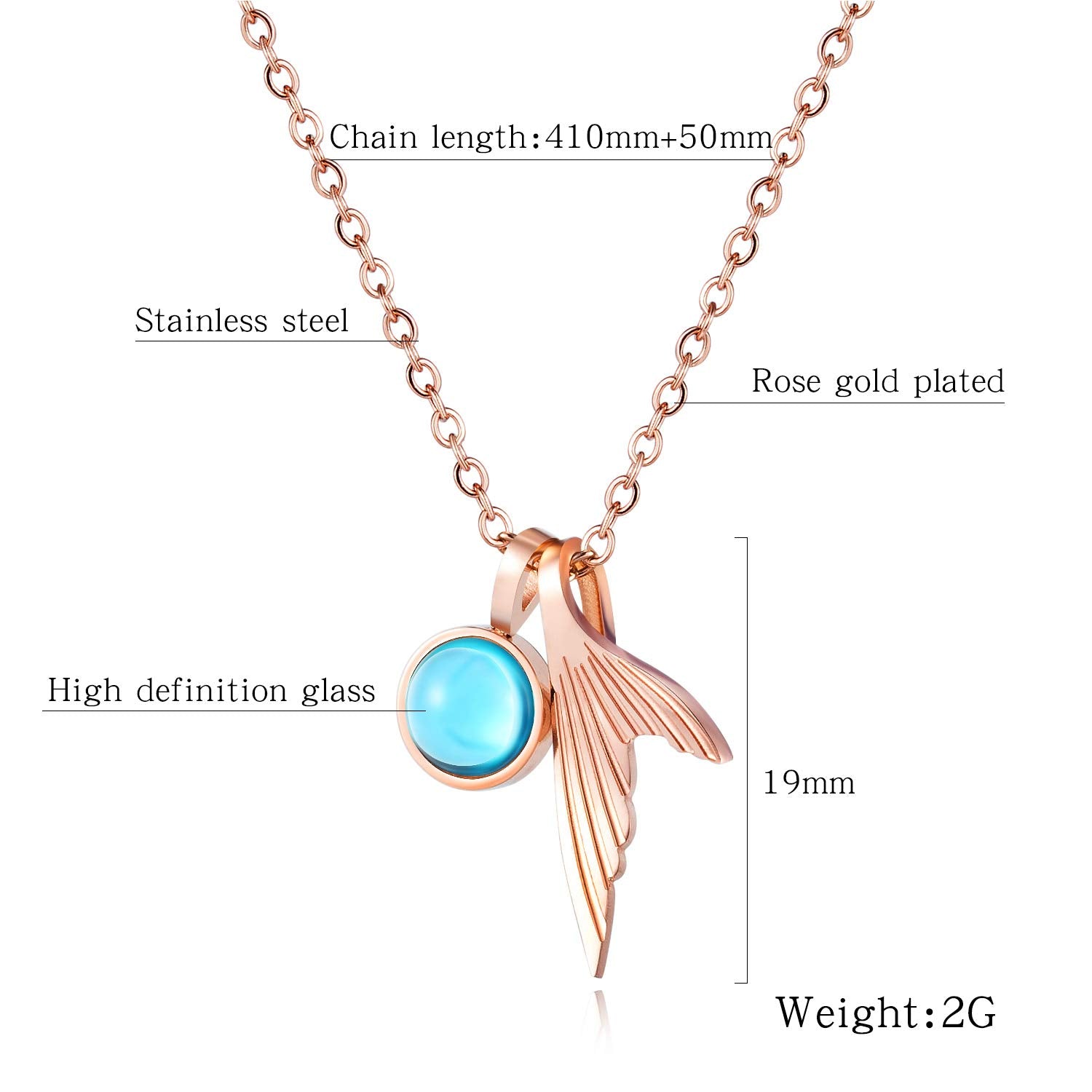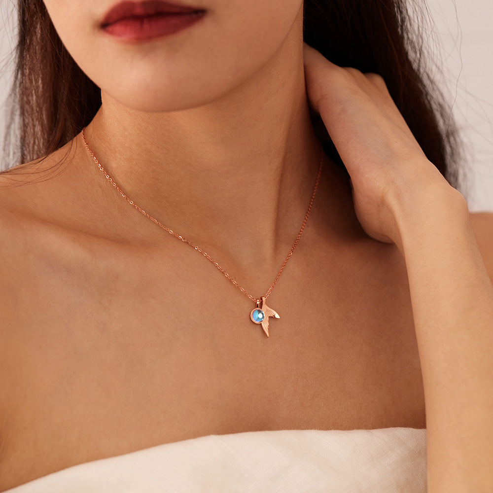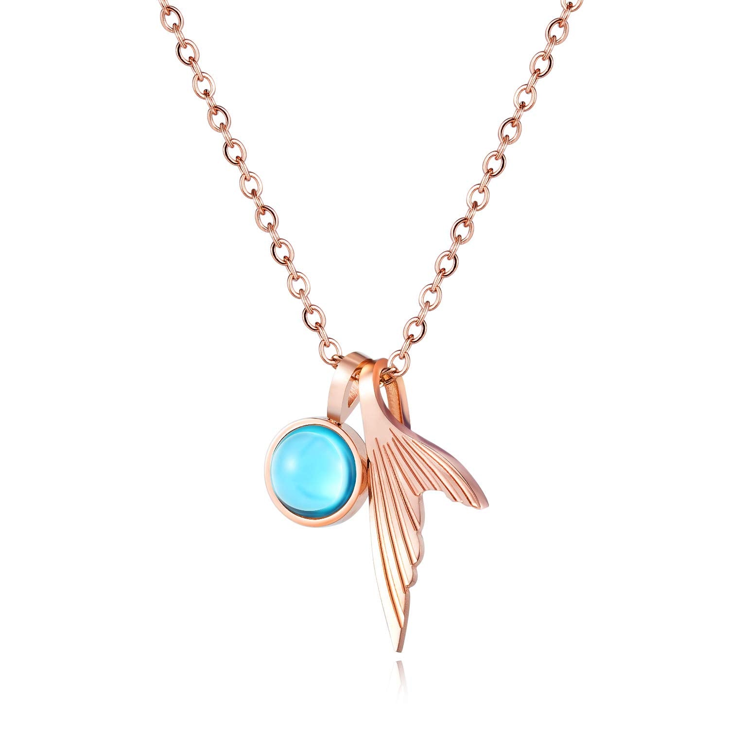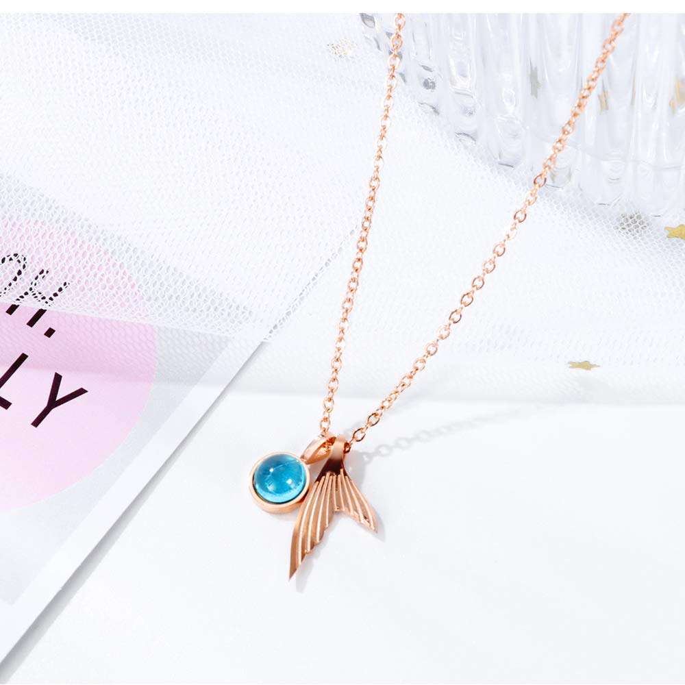 Rockyu ネックレス レディース ペンダント 人魚のしっぽ サファイア風クリスタル チタン製 18Kピンクゴールド仕上げ 細め鎖骨チェーン 女性用アクセサリー