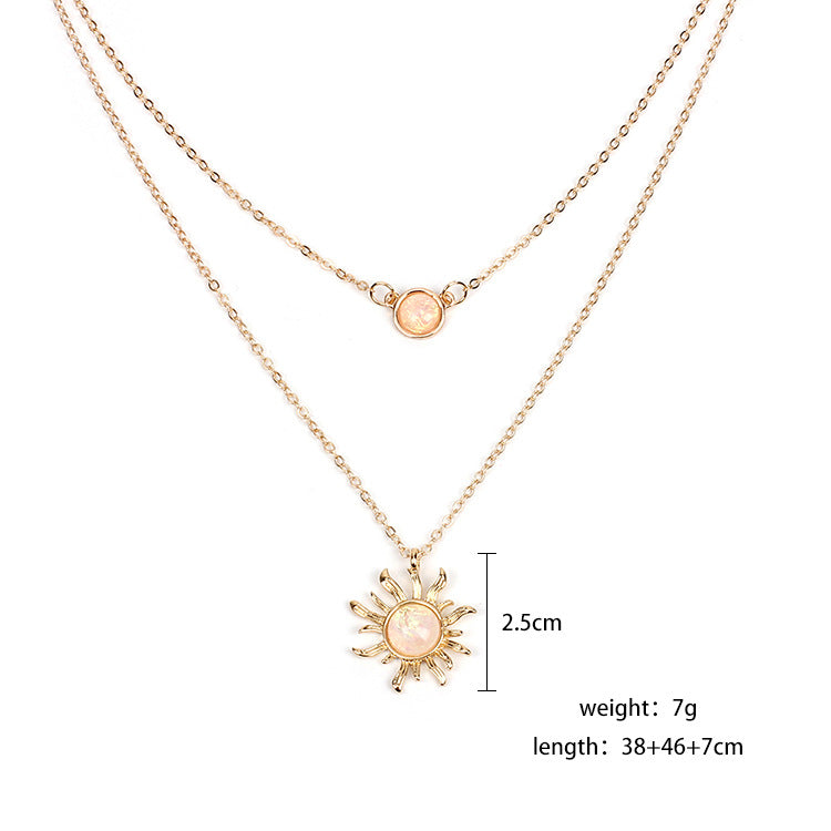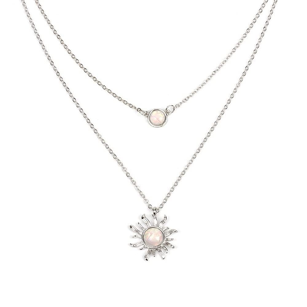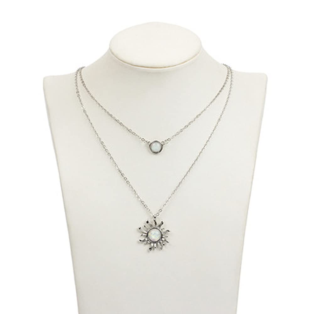 Rockyu 太陽&月モチーフ 二連ネックレス レディース ゴールド&シルバー オパール風ペンダント