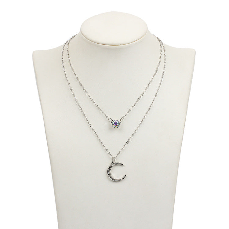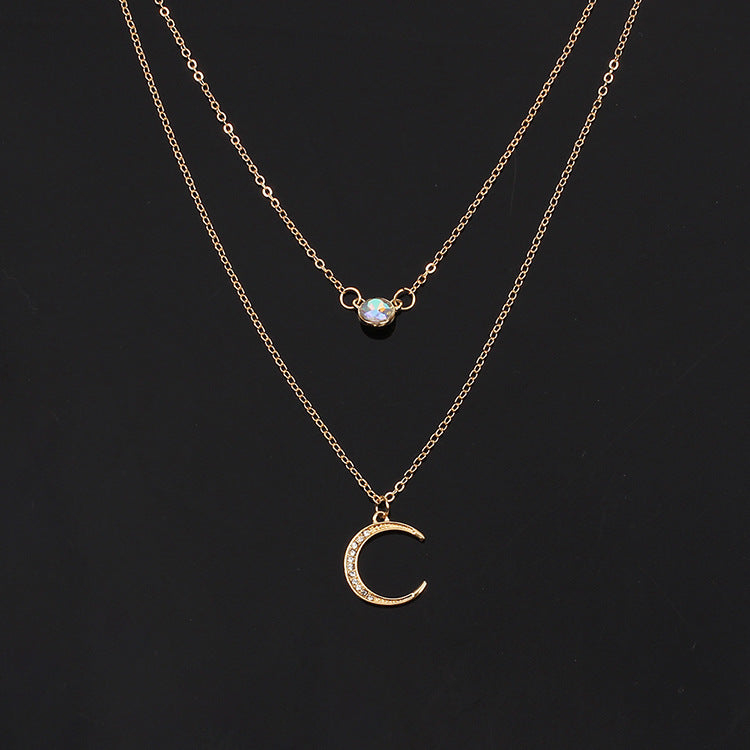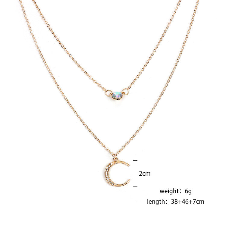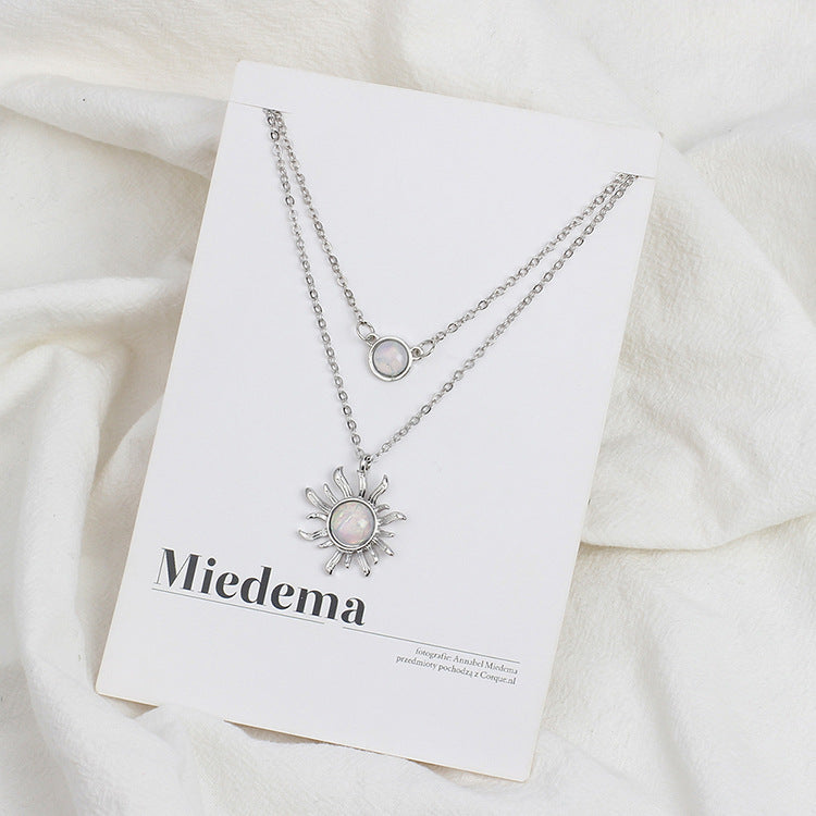 Rockyuの太陽&月モチーフ二連ネックレスは、幻想的なオパール風ストーンと華奢なチェーンが織りなす、まるで星空を身にまとうようなロマンチックデザイン。