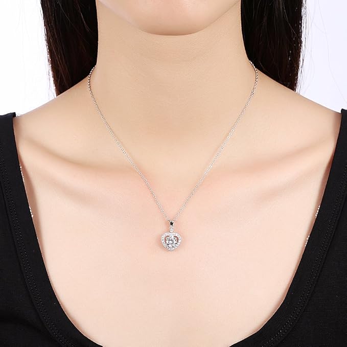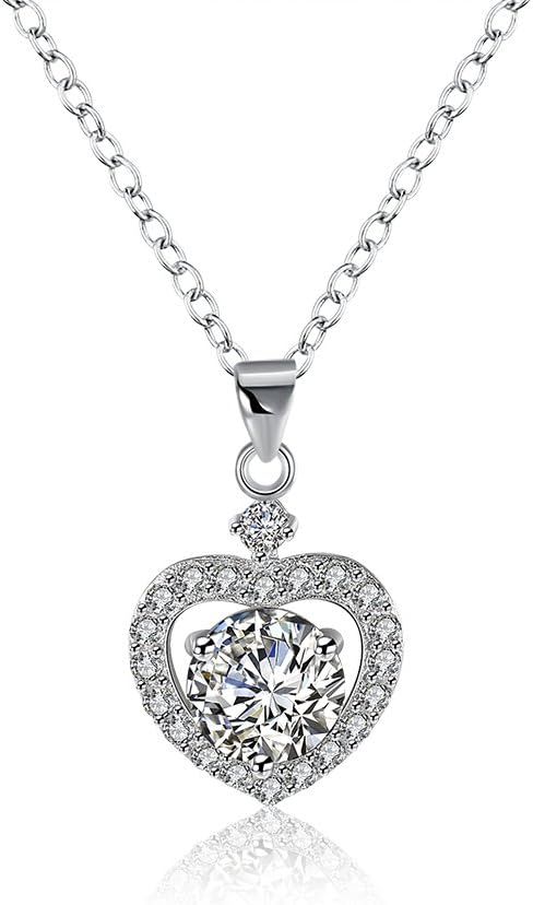 Rockyu ネックレス レディース シルバー925 一粒ジルコニア ハートペンダント