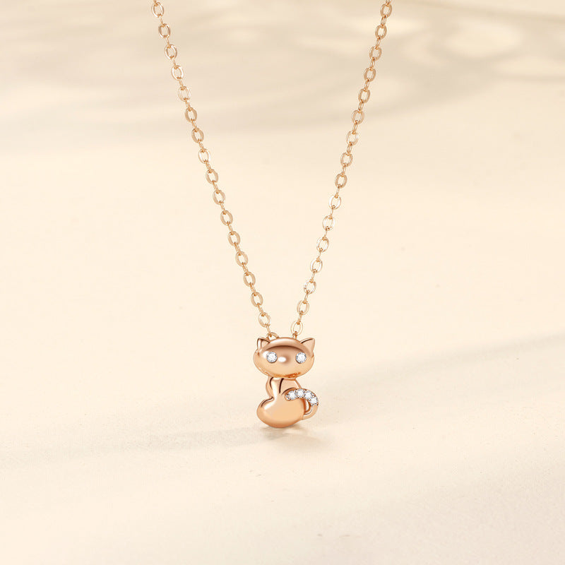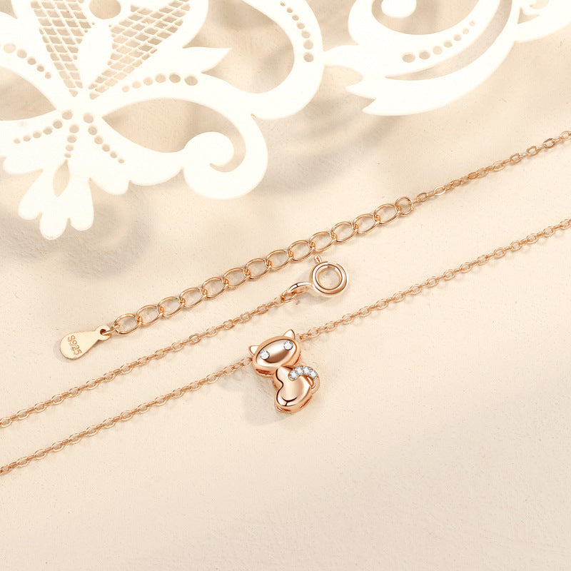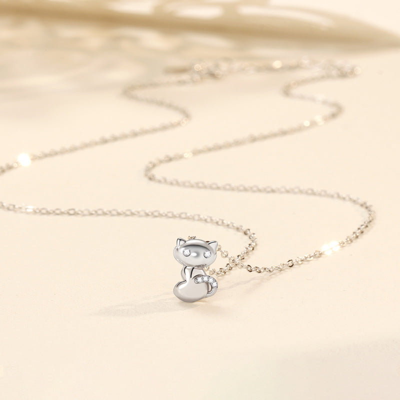 Rockyu ネックレス レディース 猫 シルバー925 ジルコニア ペンダント 純銀 鎖骨チェーン