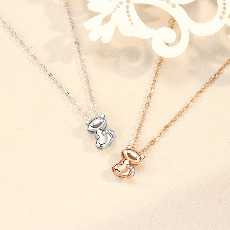 可愛さと上品さを首元に。Rockyu が贈る猫モチーフネックレスは、S925純銀にAAAランクのジルコニアをあしらった華やかで愛らしいデザイン。つぶらな瞳と丸いシルエットの猫が、まるで胸元で遊んでいるかのように輝きを放ちます。