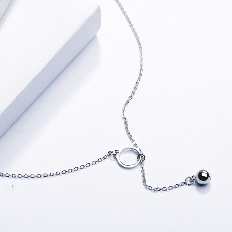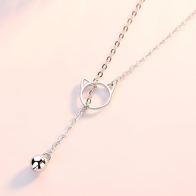 Rockyu 猫モチーフネックレス レディース シルバー925 鎖骨チェーン付き ジルコニアチャーム