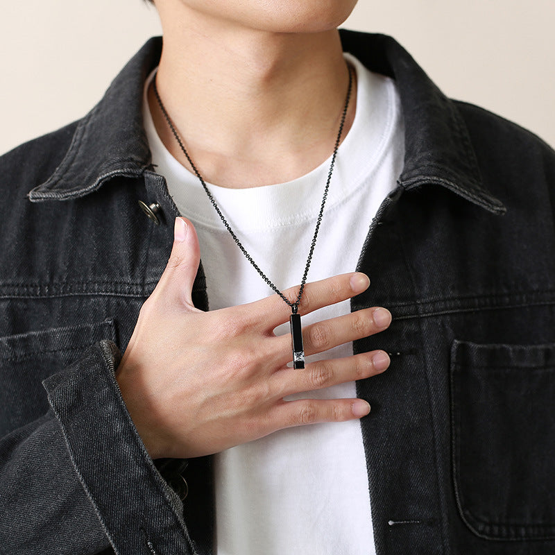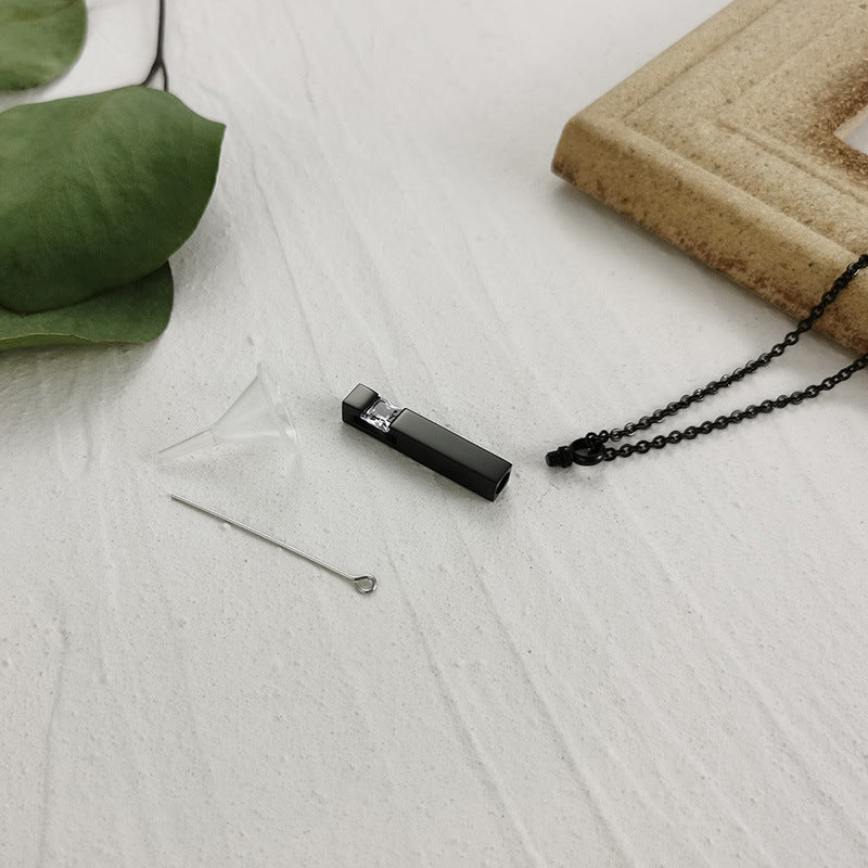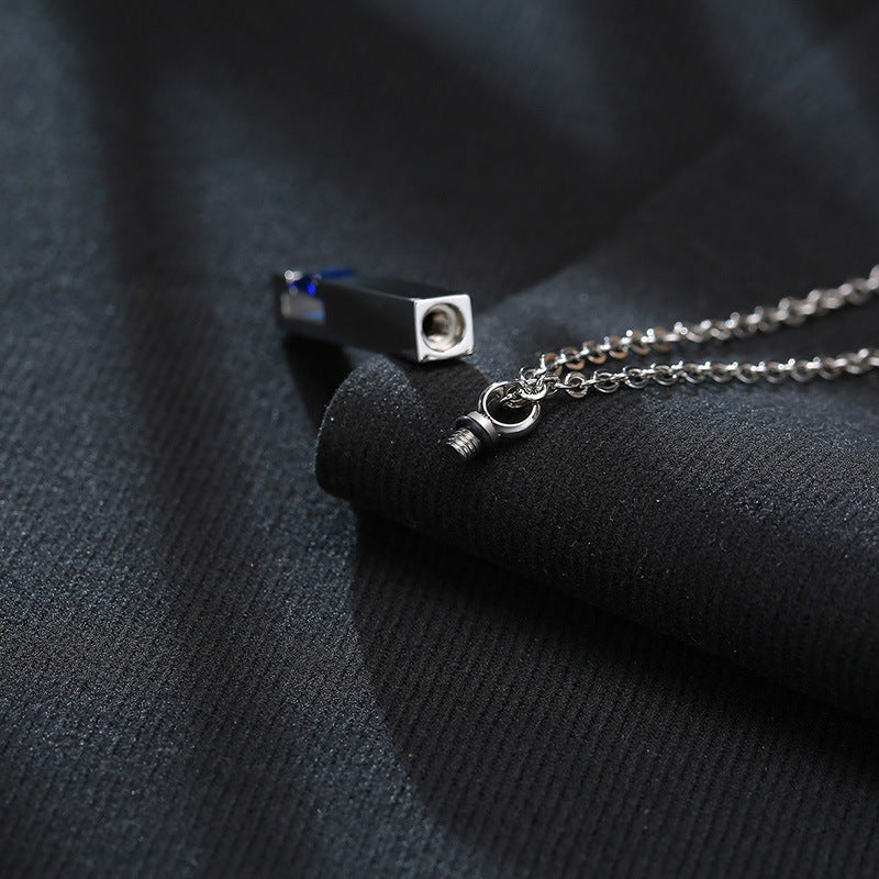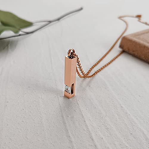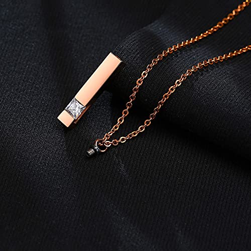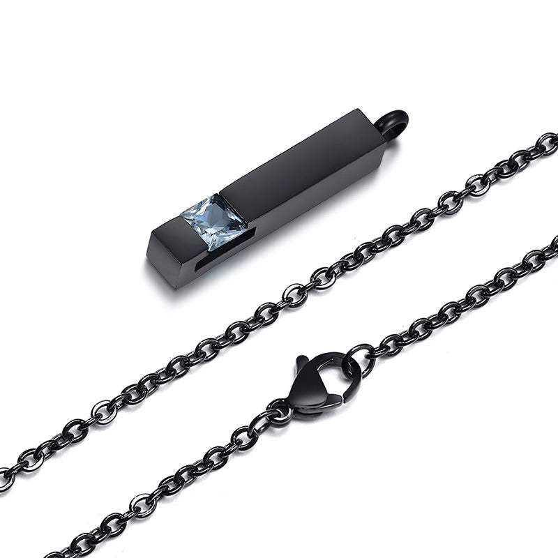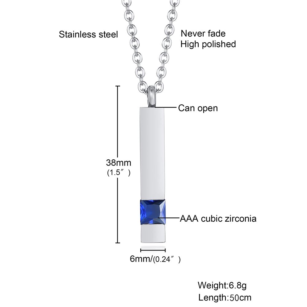 Rockyu メモリアルネックレス スティックペンダント 遺骨収納 ジルコニア付き 防水 ステンレス製