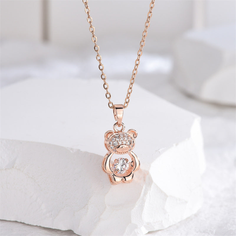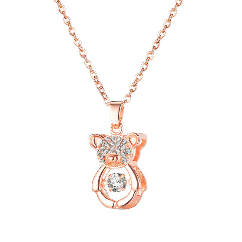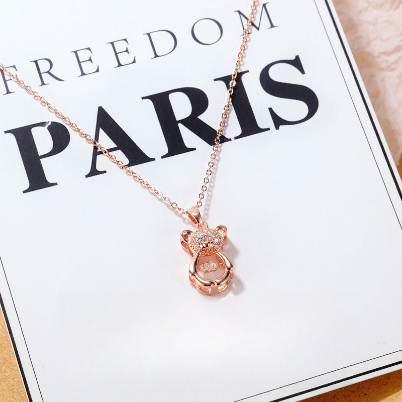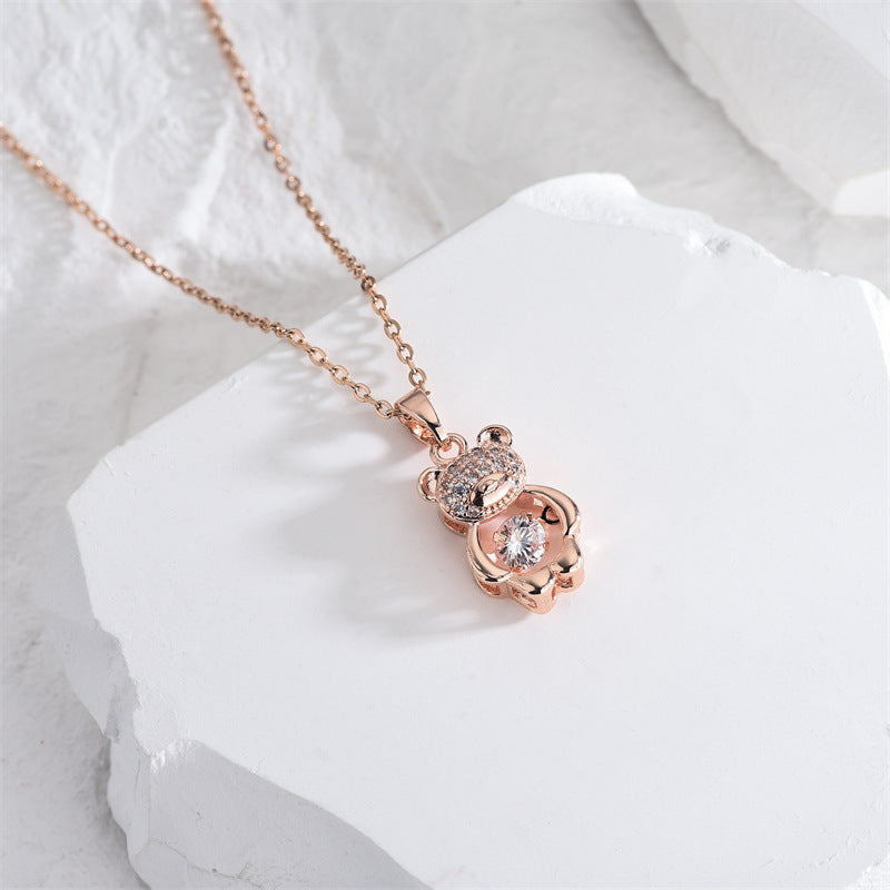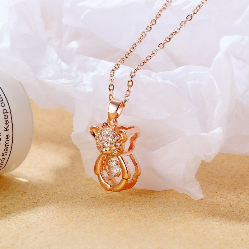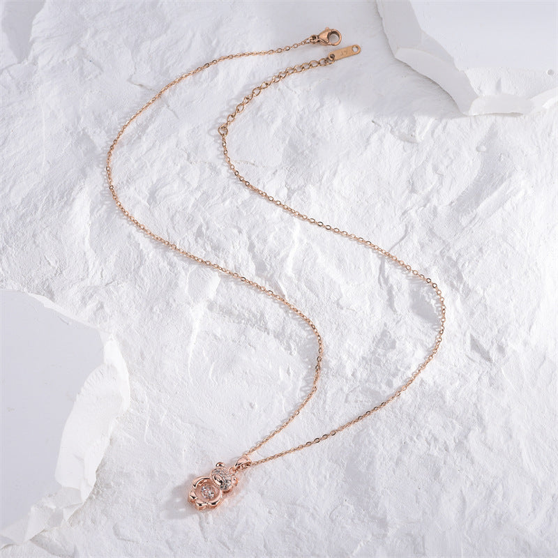 Rockyu ネックレス レディース テディベア CZ ピンクゴールド くまモチーフ 鎖骨チェーン