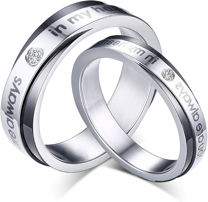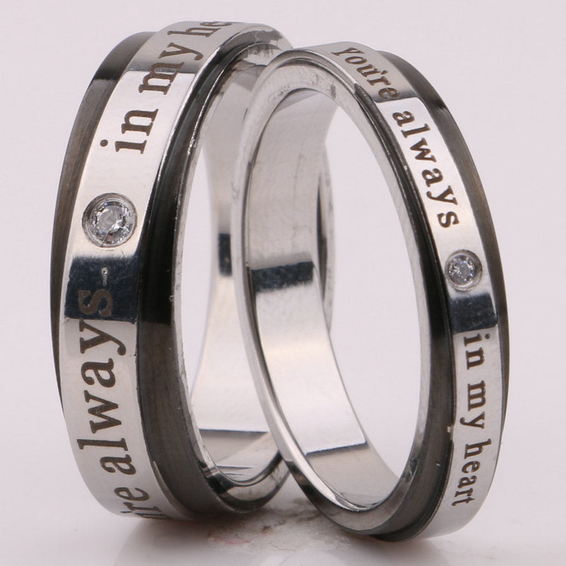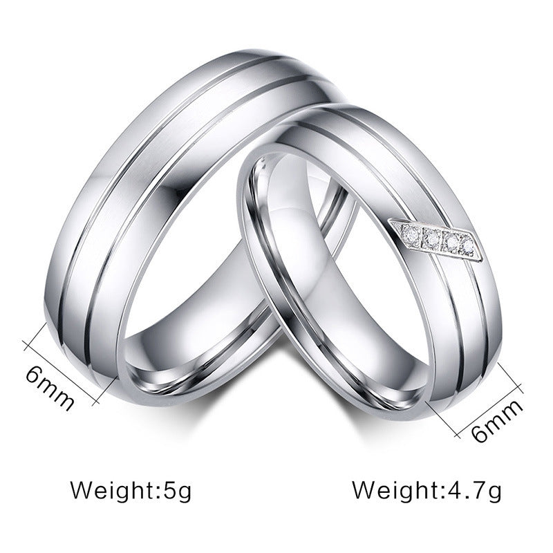 ペアリング シンプル&ジルコニア付き|錆びにくいステンレス製カップル指輪