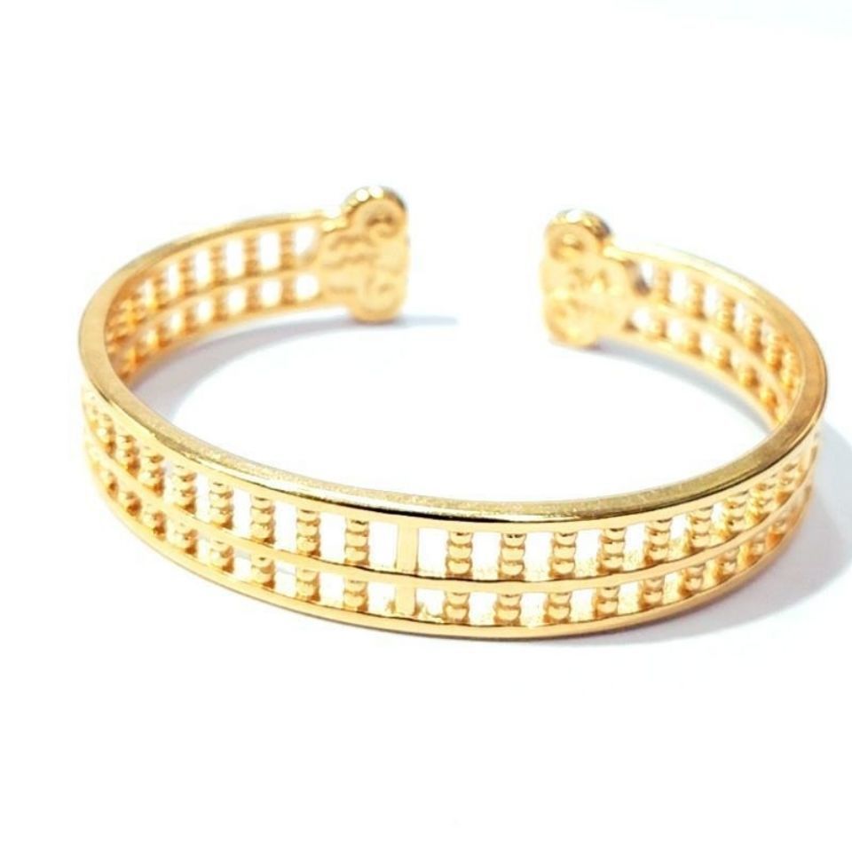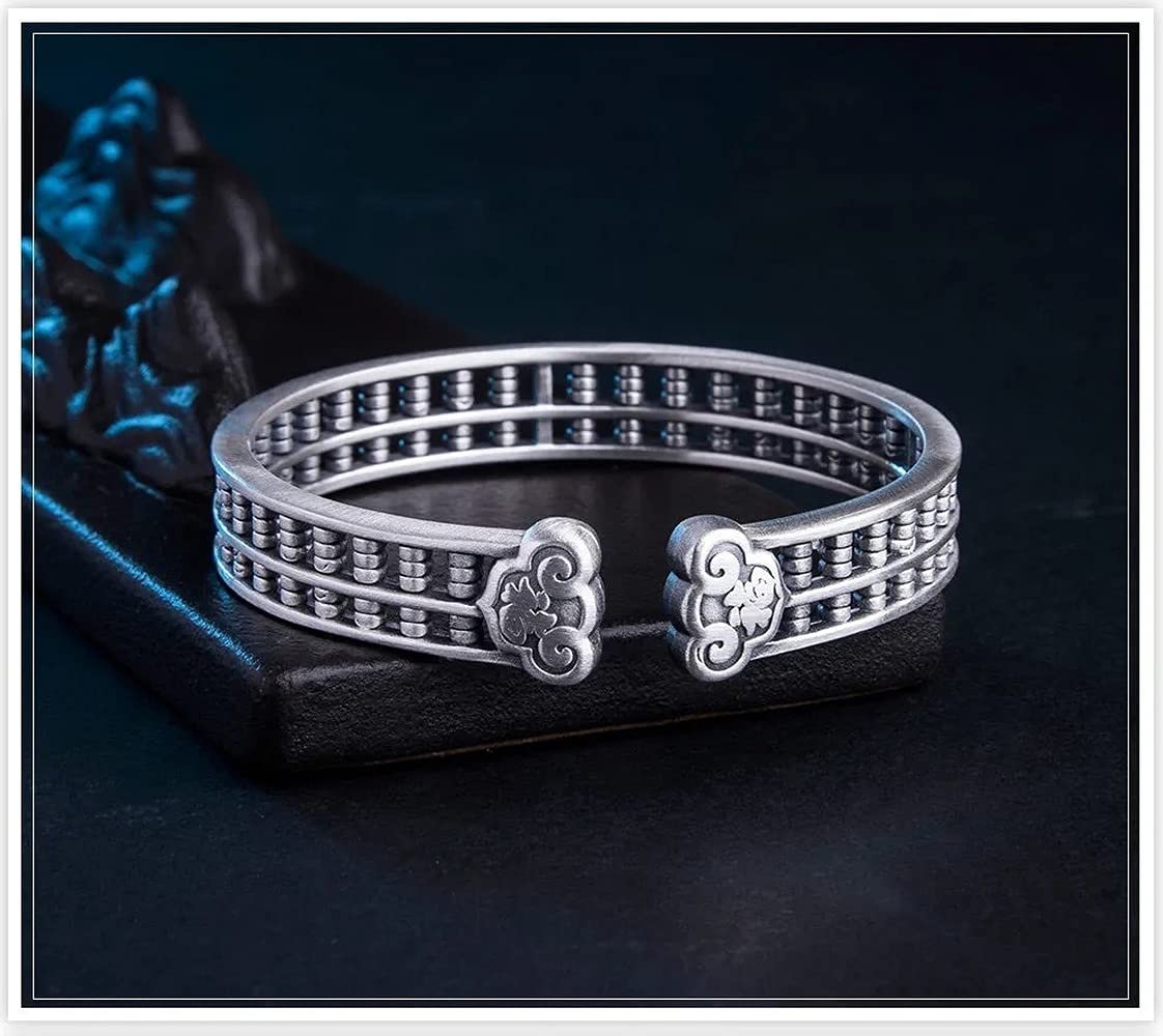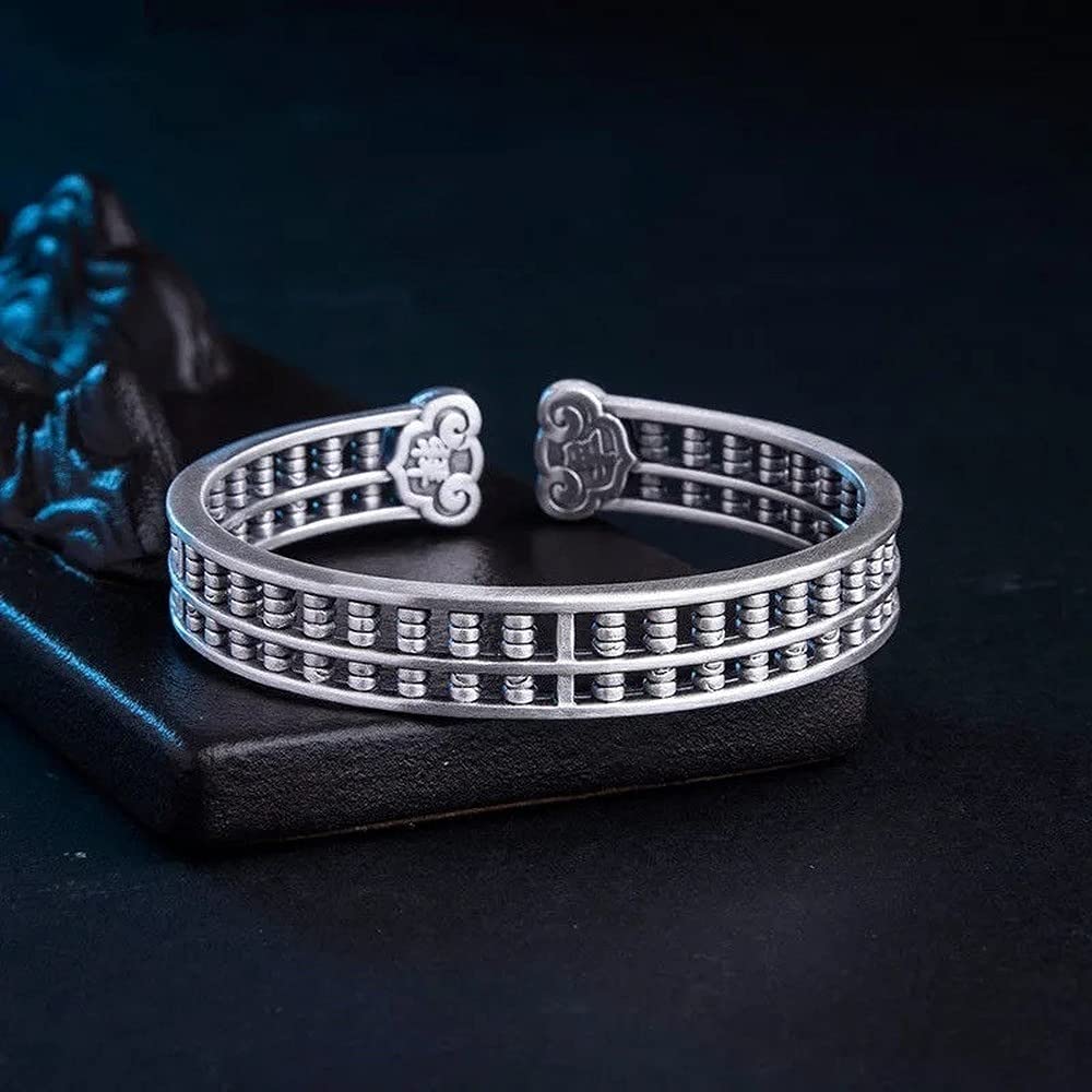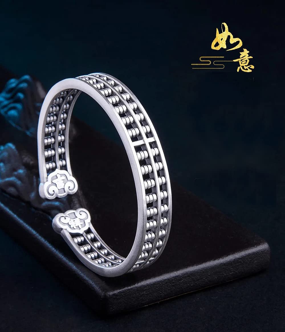 Rockyu バングル 男女兼用 そろばんデザイン シルバー&ゴールド 開運 厄除け 中華風 アクセサリー